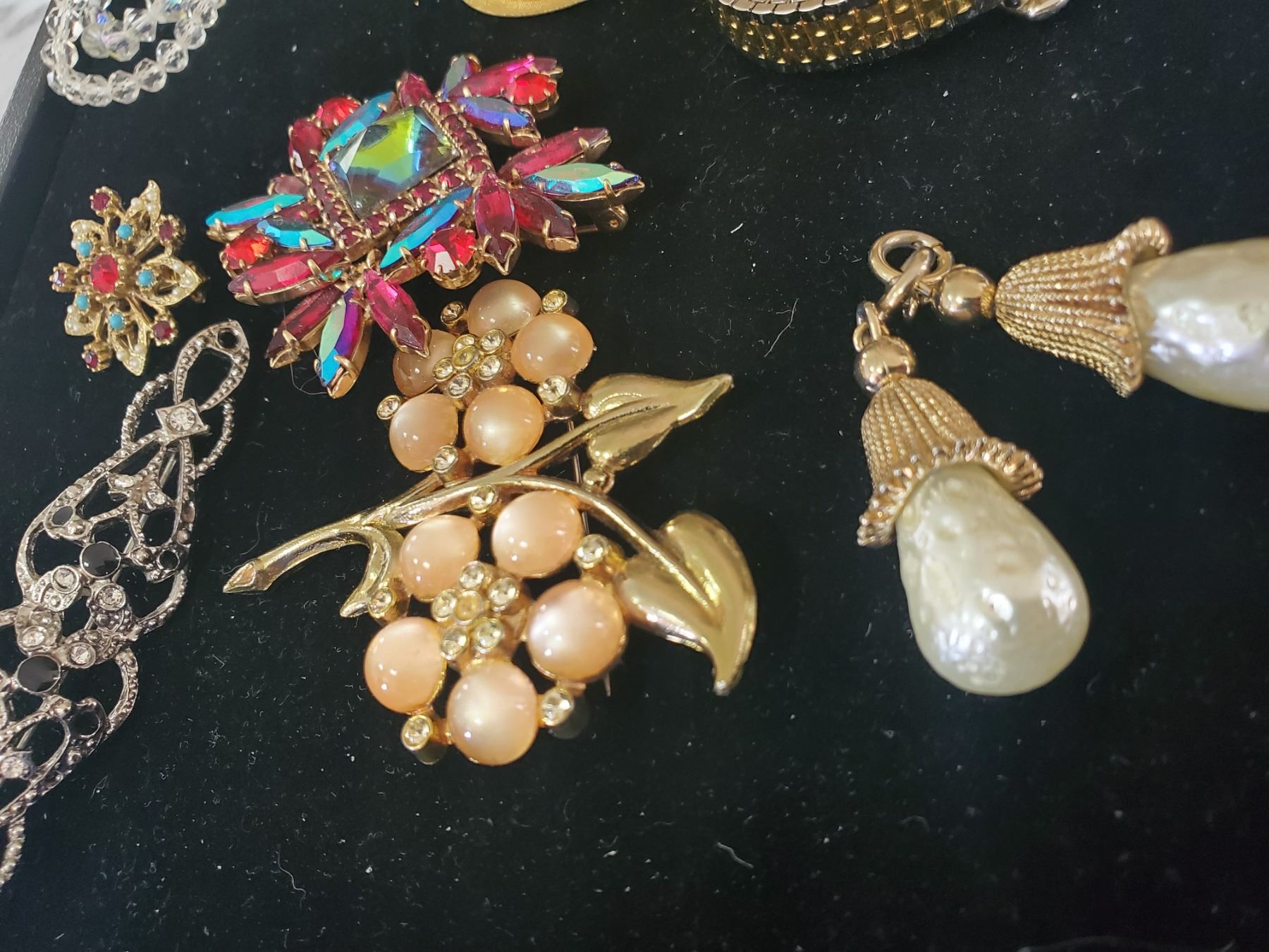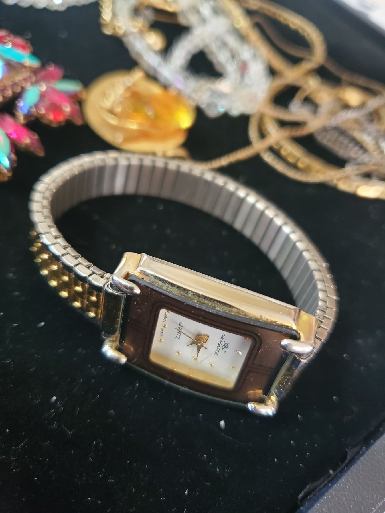 Assorted Jewelry- Vintage costume watch, earrings, necklaces, brooches
