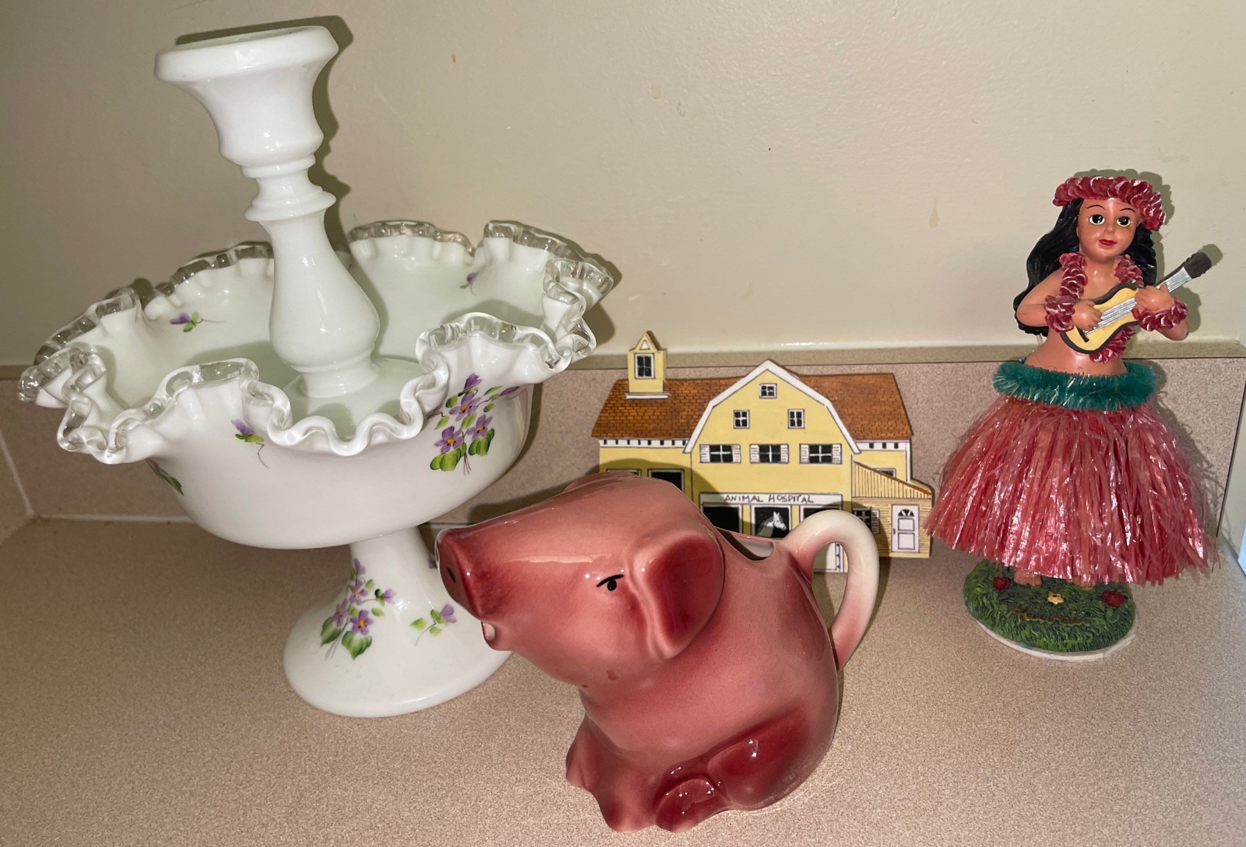 Assorted Milk Glass Pieces w/ Hula Dance Girl & Glass Pig