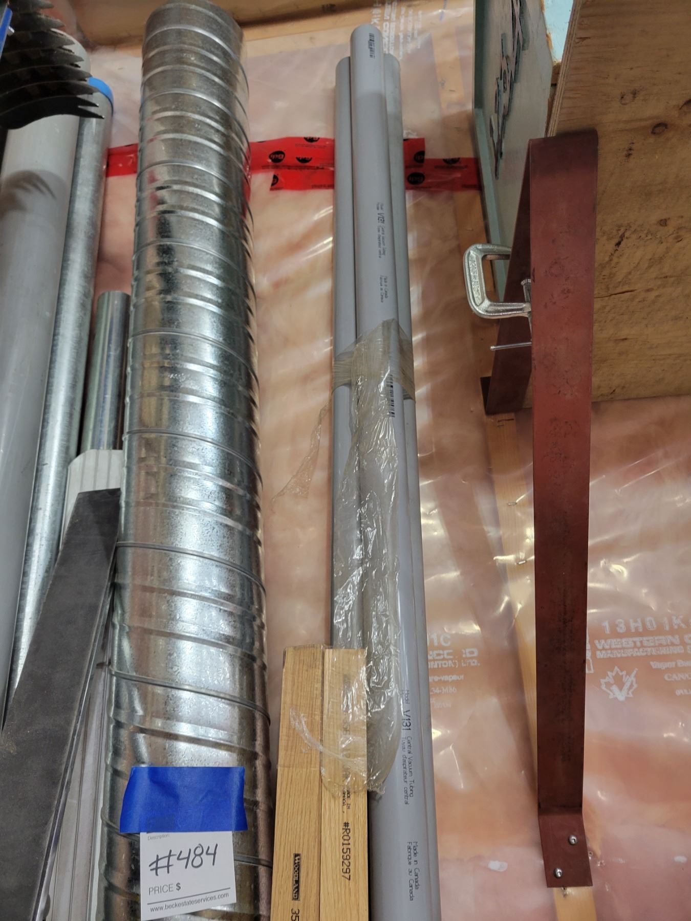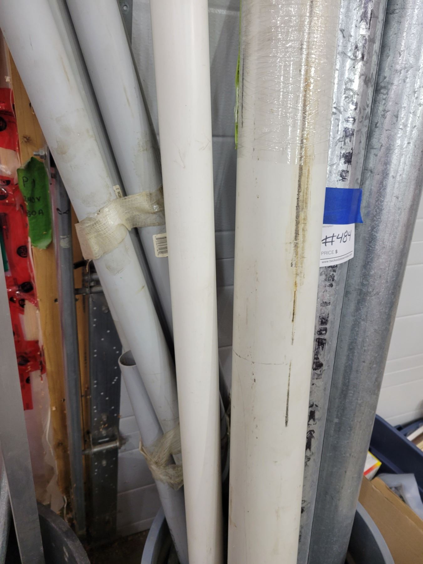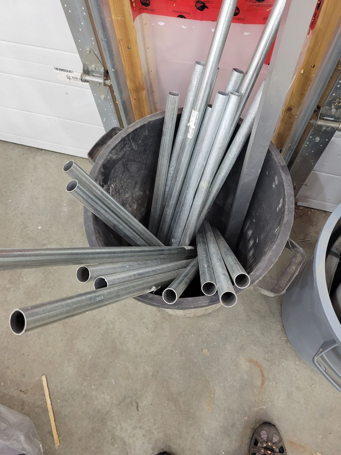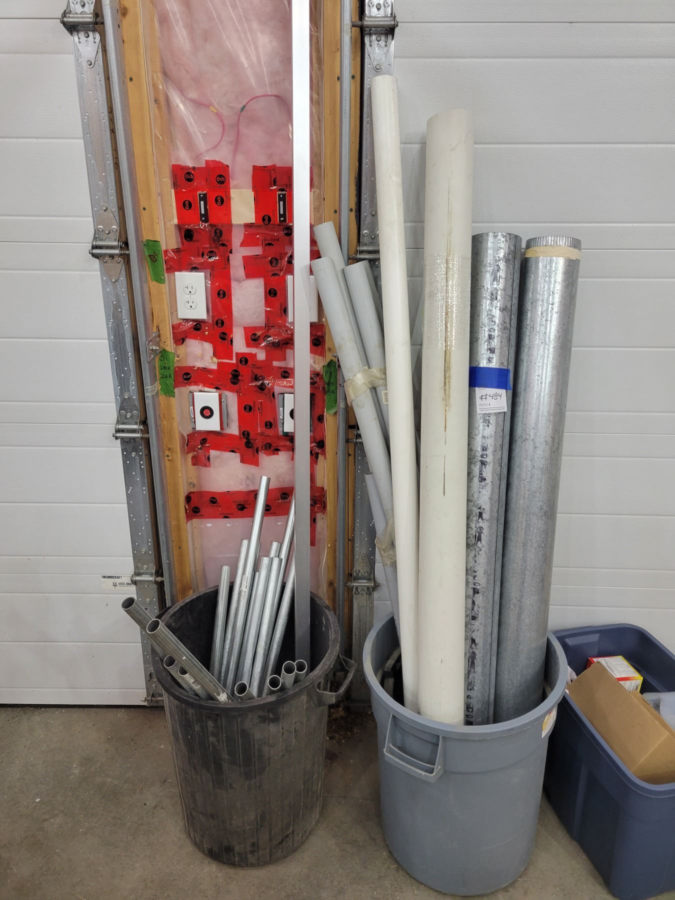 Assorted PVC, Ducting, Electrical Metal Tubing with Garbage Bins & Large 11ft Duct & 3 11ft PVC