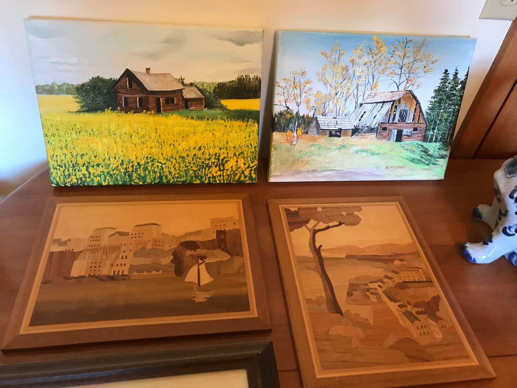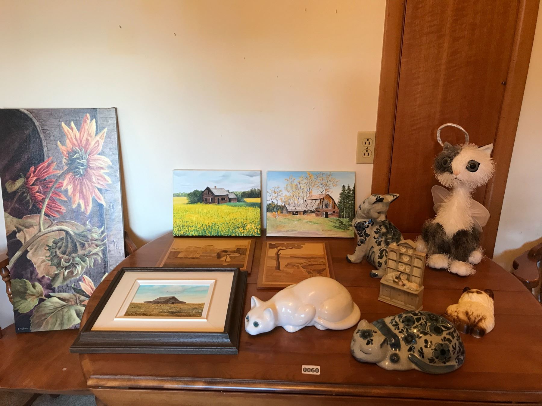 Assorted Pictures & Cat Statues