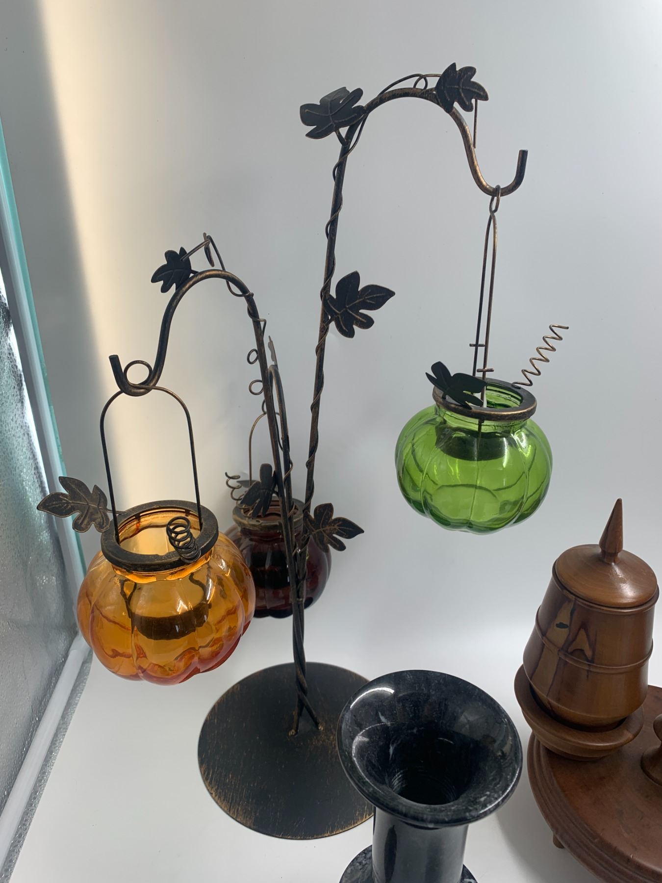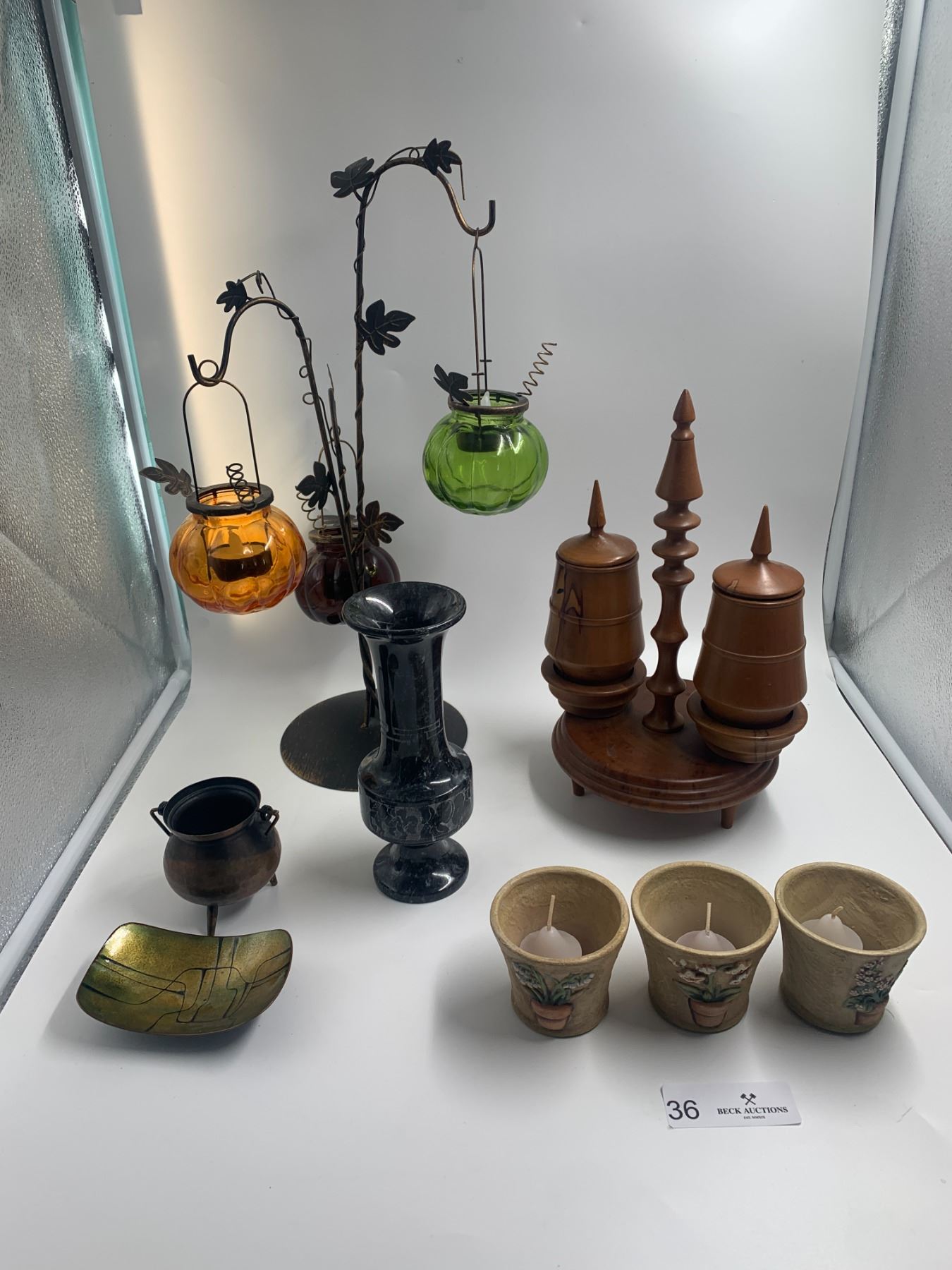 Including hanging tea candle holder, black marble-look vase, 3 x floral pottery tea candle holders, miniature cauldron, and more!