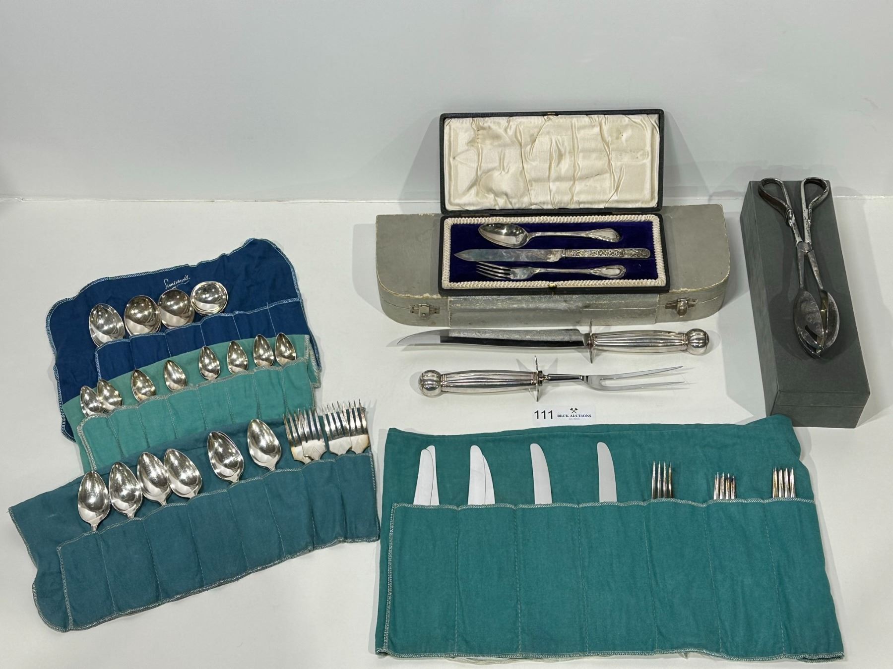 Assorted SIlver-Plated Utensils and Carving Set