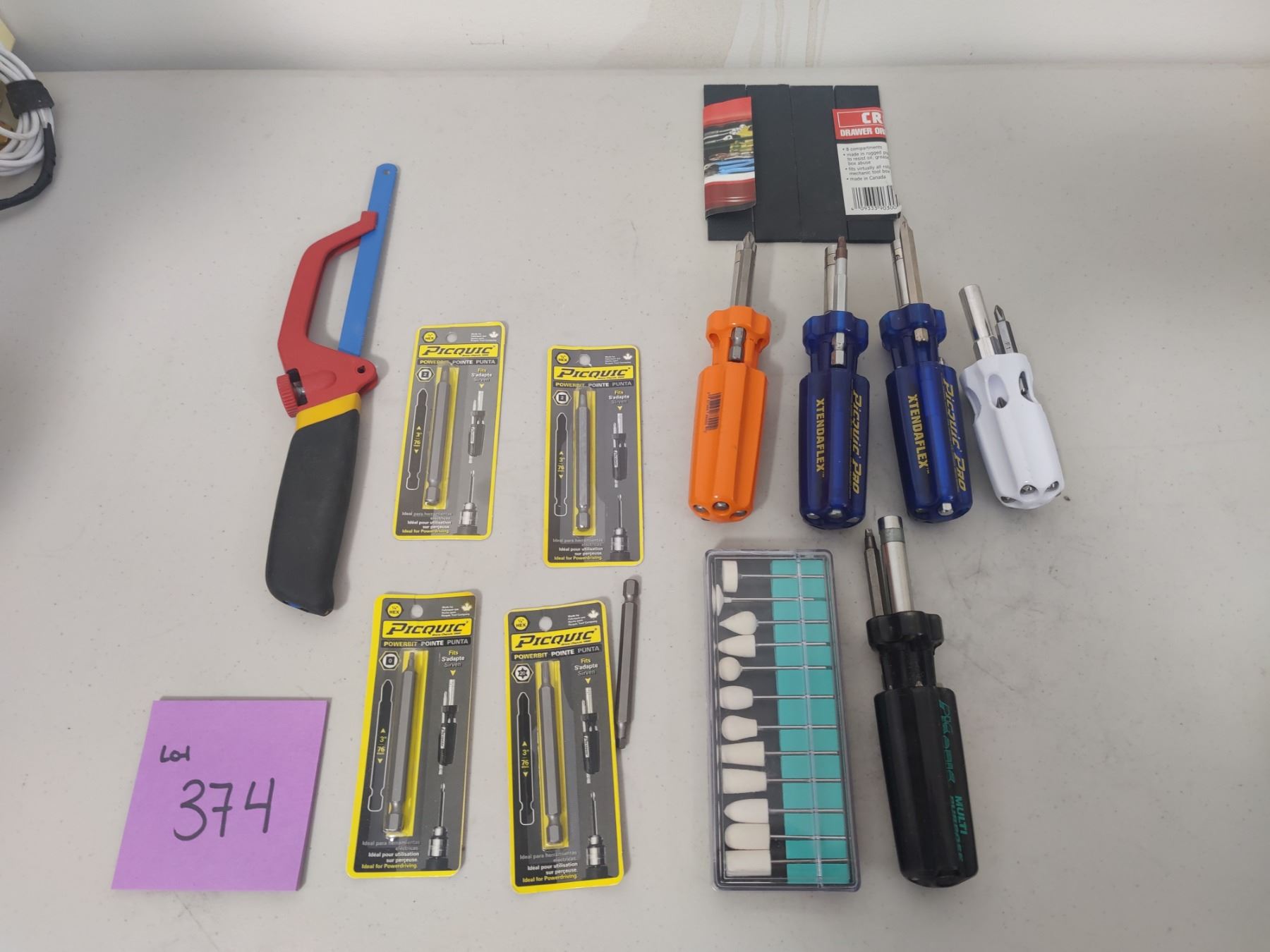 Assorted Screwdrivers, Drill Bits, Drummel Bits & Small Hand Saw