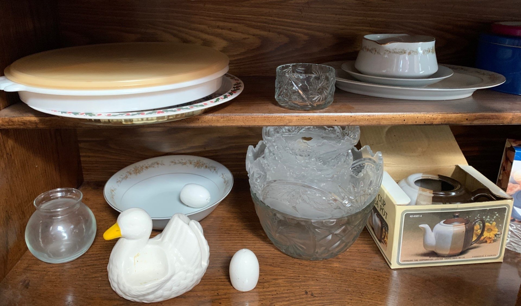 Assorted Serving Vessels Platters Teacup Crystal & More