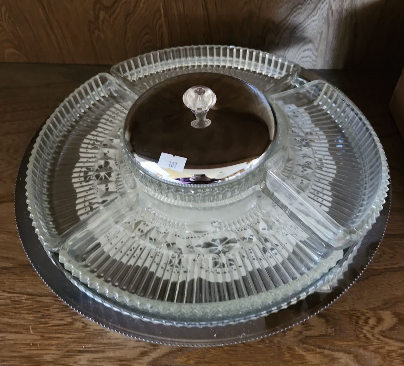 Assorted Tableware Including: Sectioned Appetizer Dish 15  Diameter, Glasses, Trinkets and More!