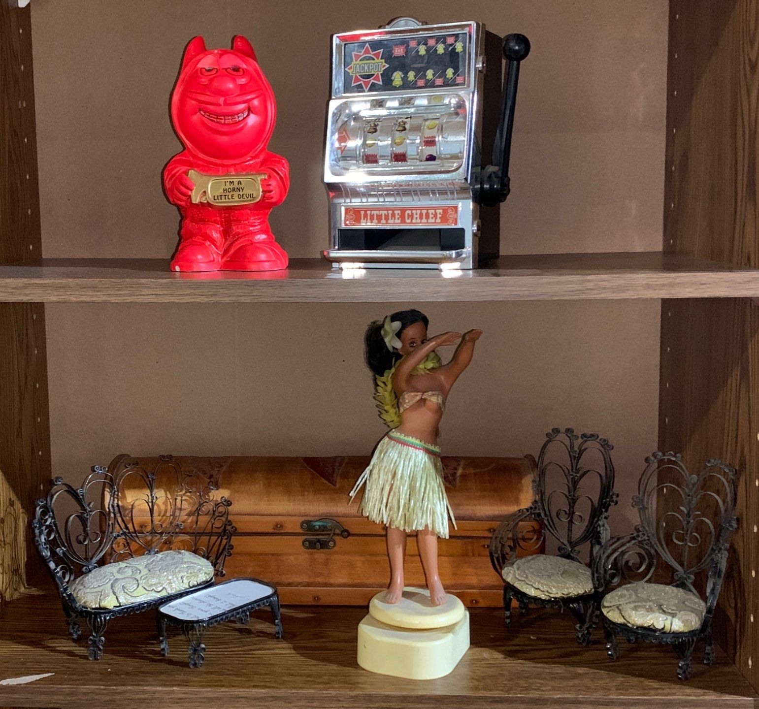 Assorted Toys & Trinkets - Mini Slot Machine Hula Girl Music Box & More
