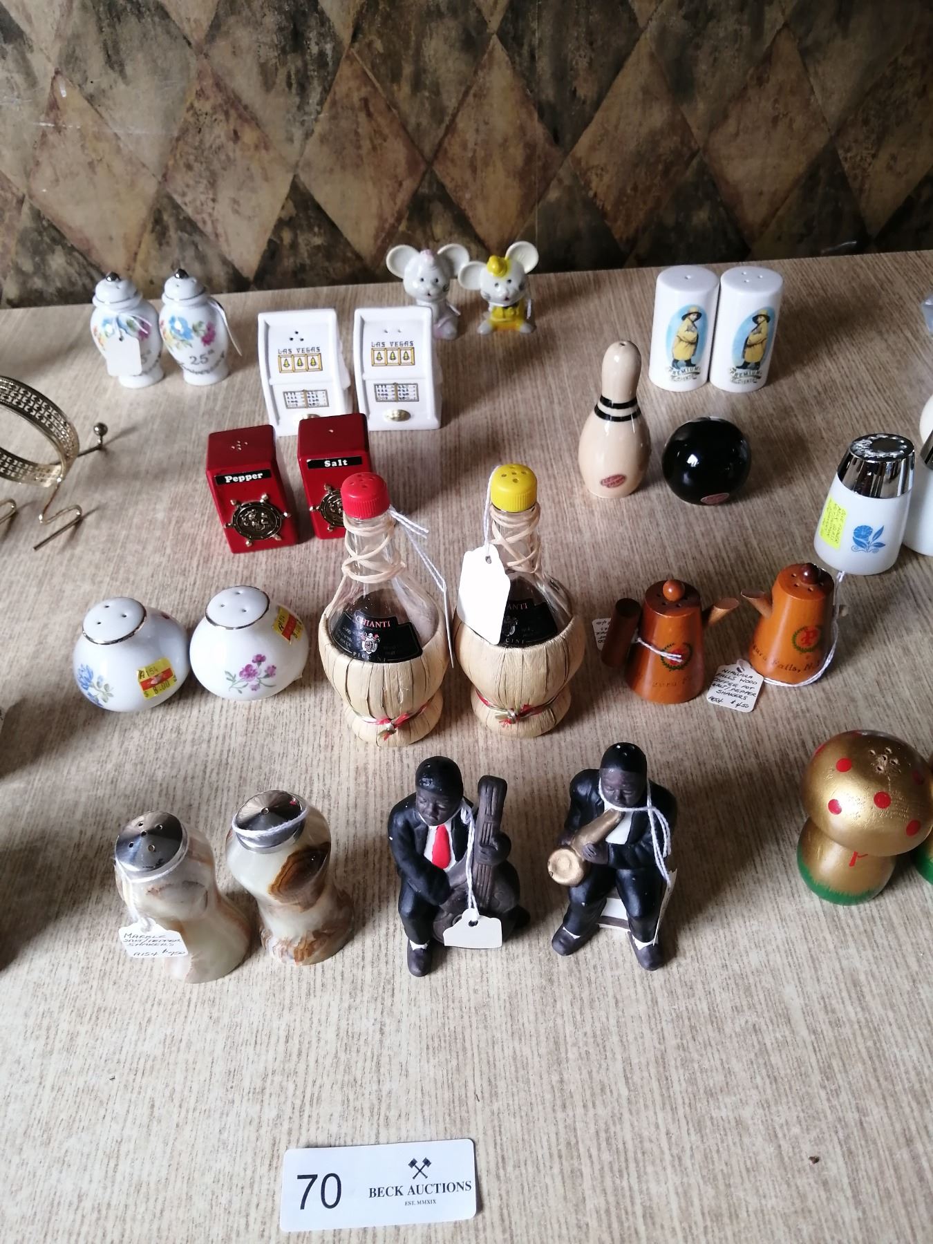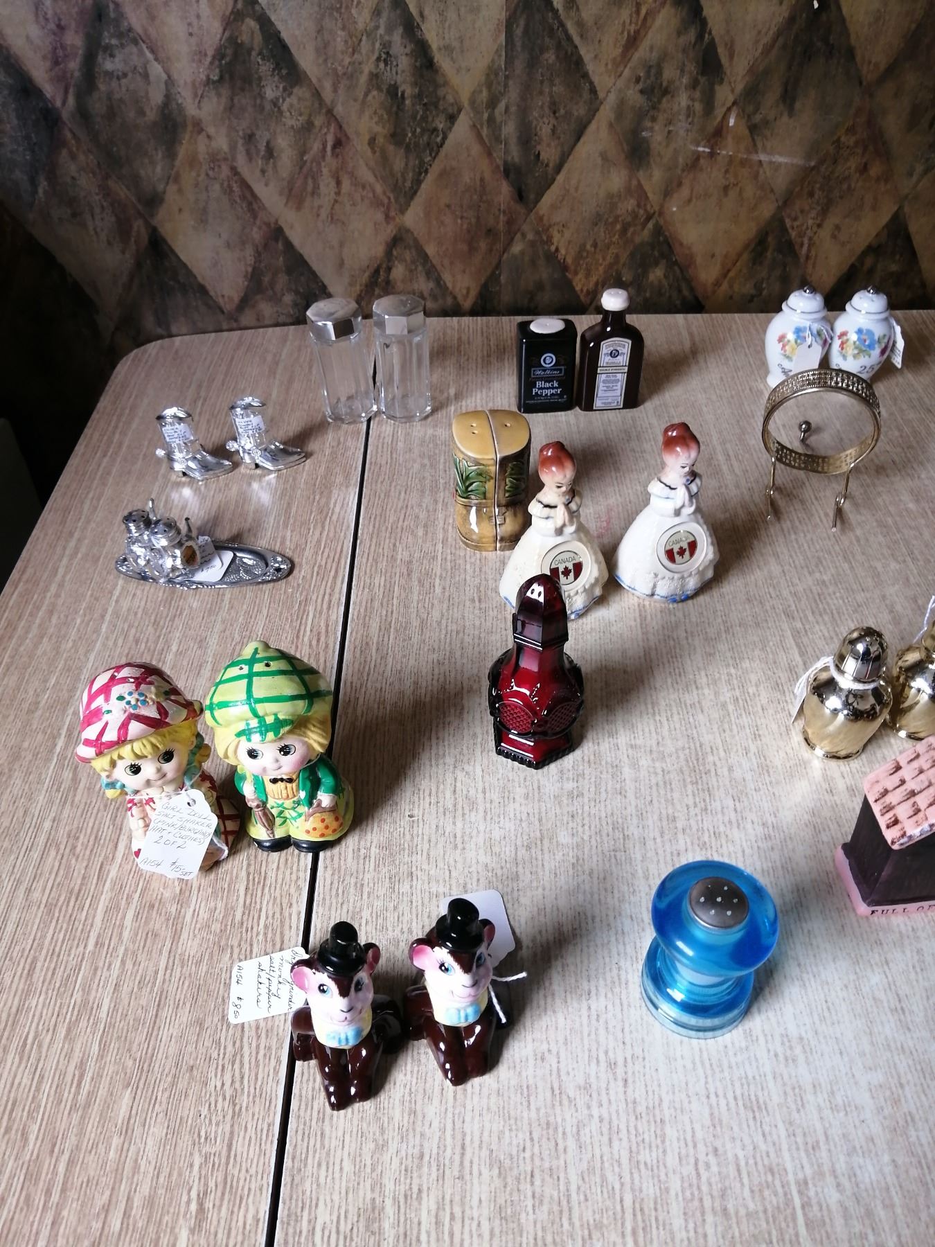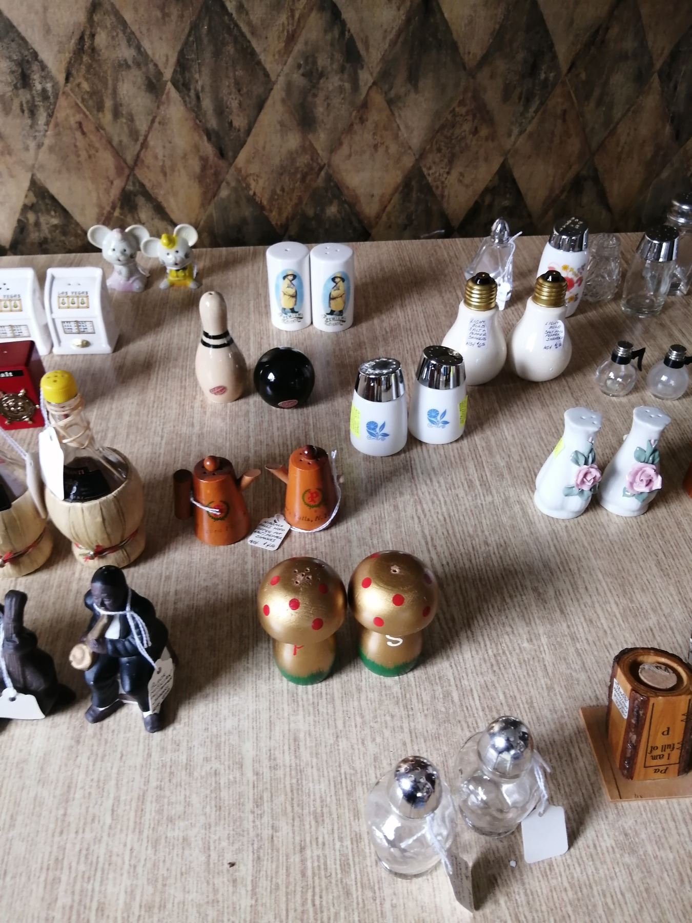 Note: The wooden stump looking pair has one of the shakers detached from the piece