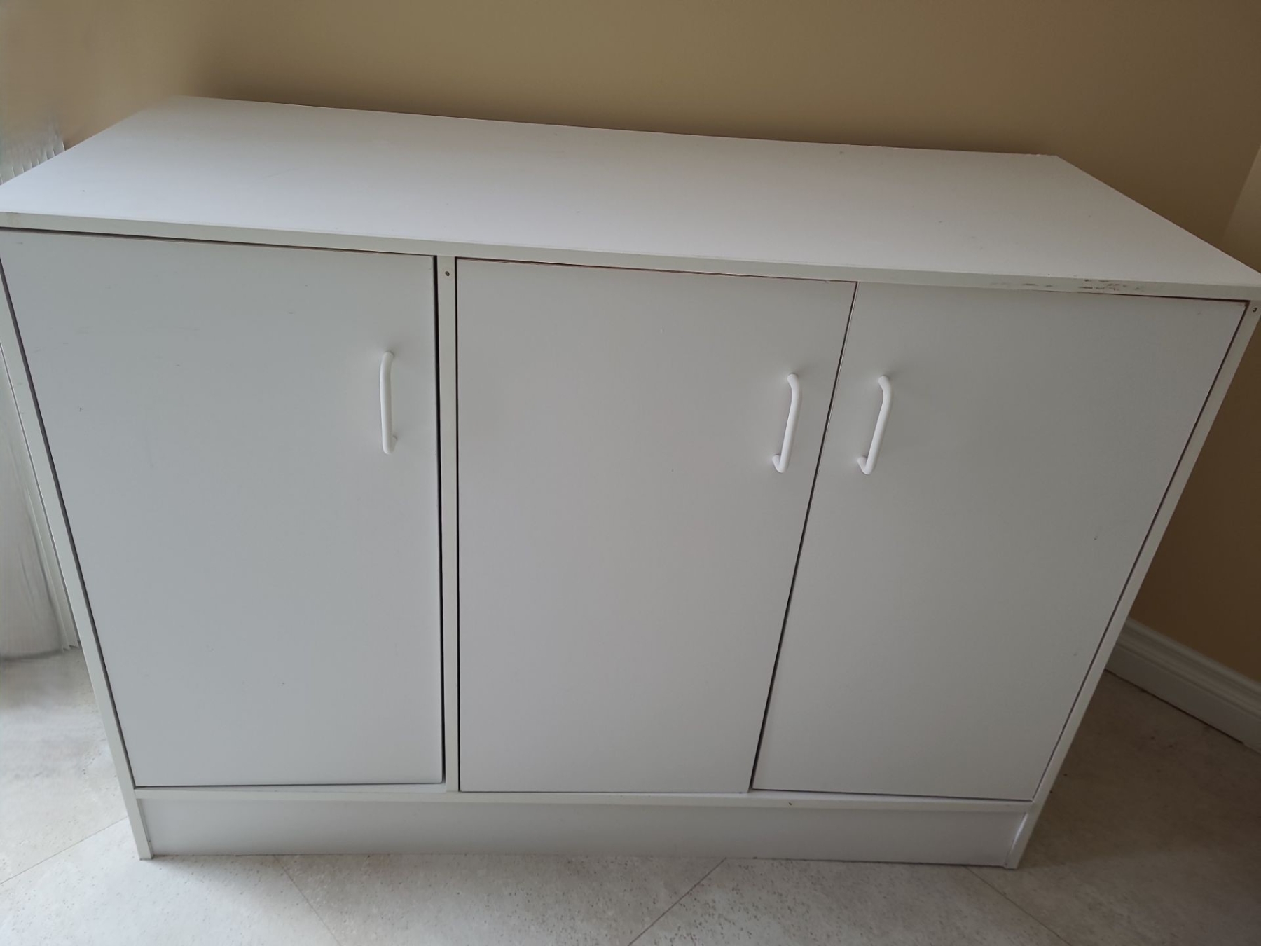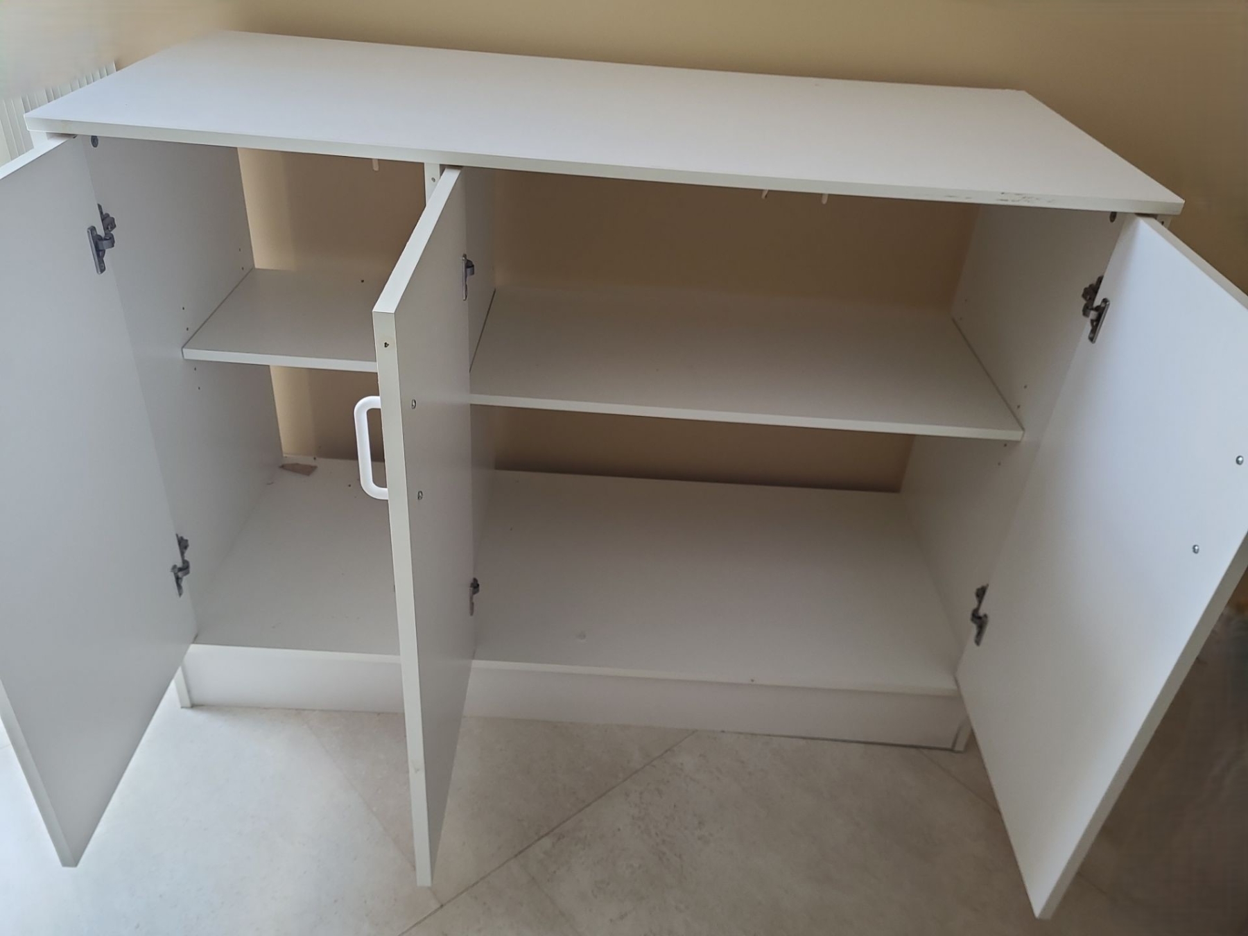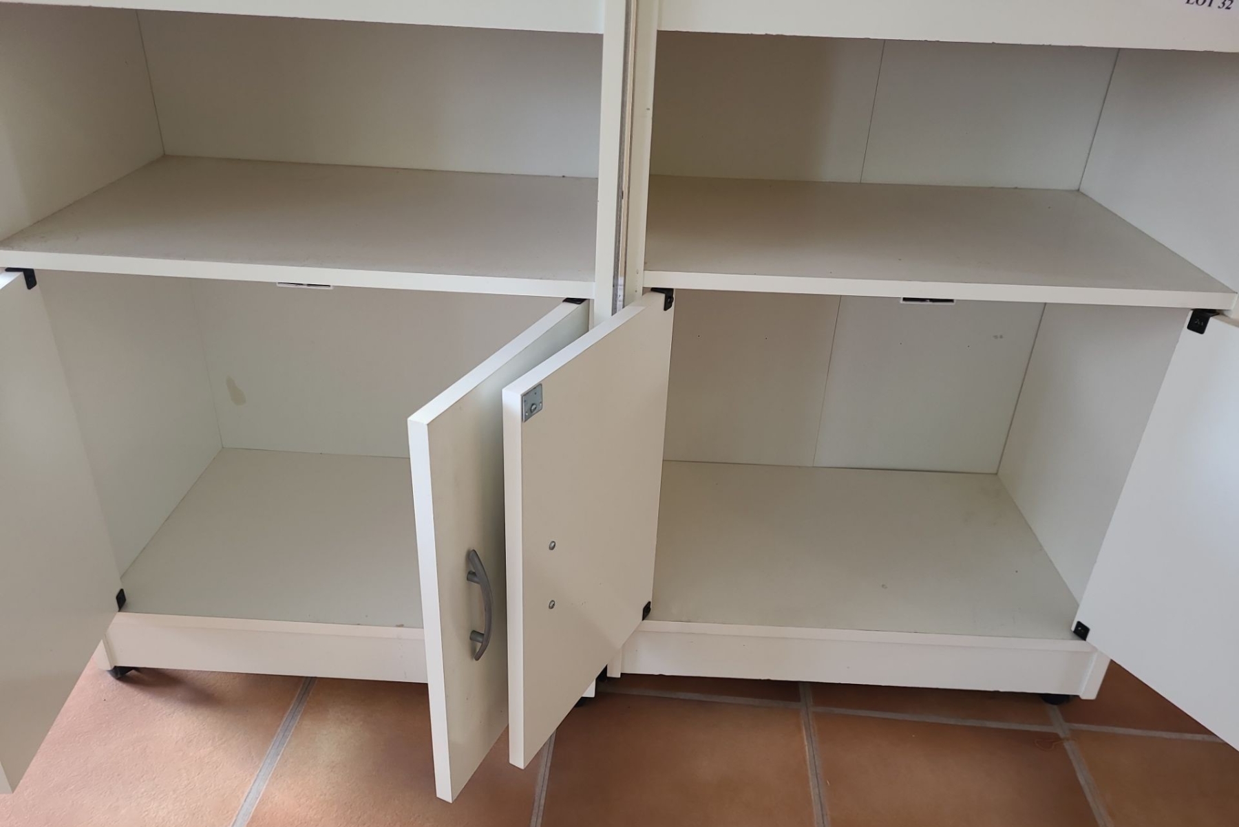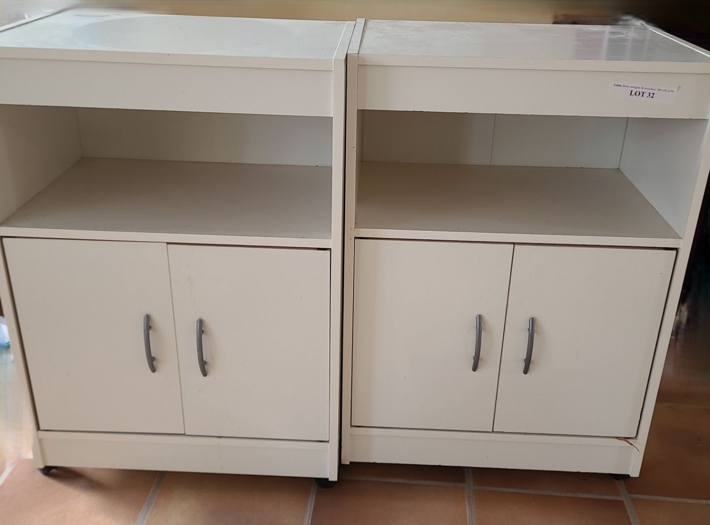 Assorted White MDF Furniture incl Pair of Cabinets 23 w, 33 h, 15 d, Cupboard 48 w, 35 h, 20 d