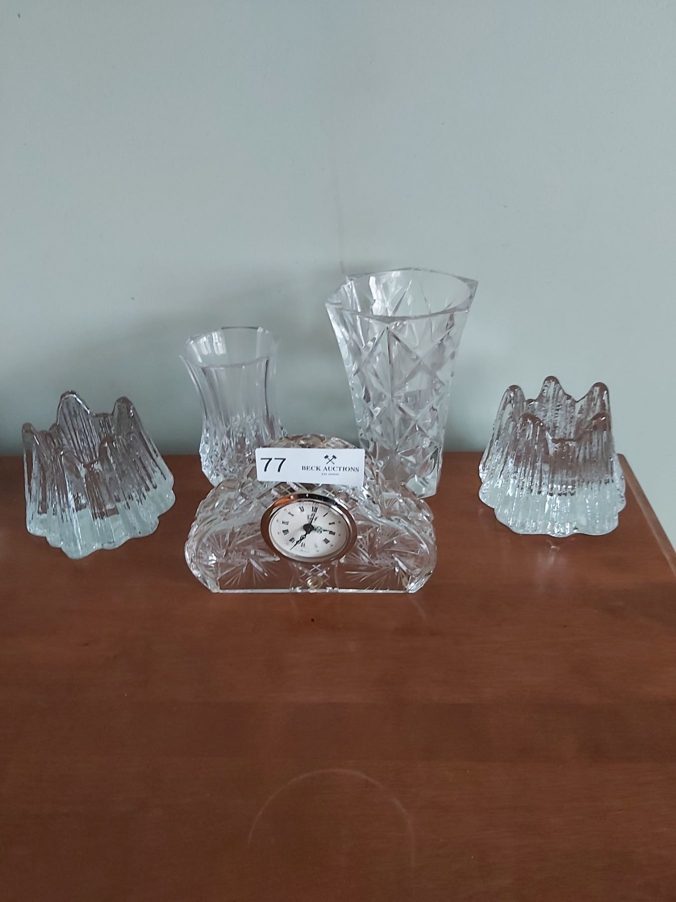 Clock, Candle holders, & Vases.