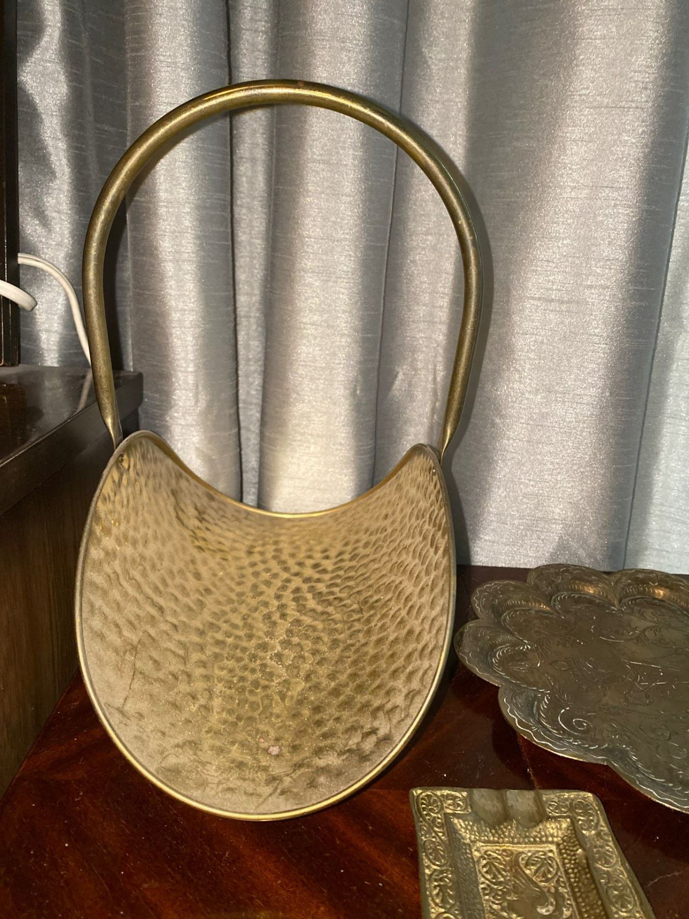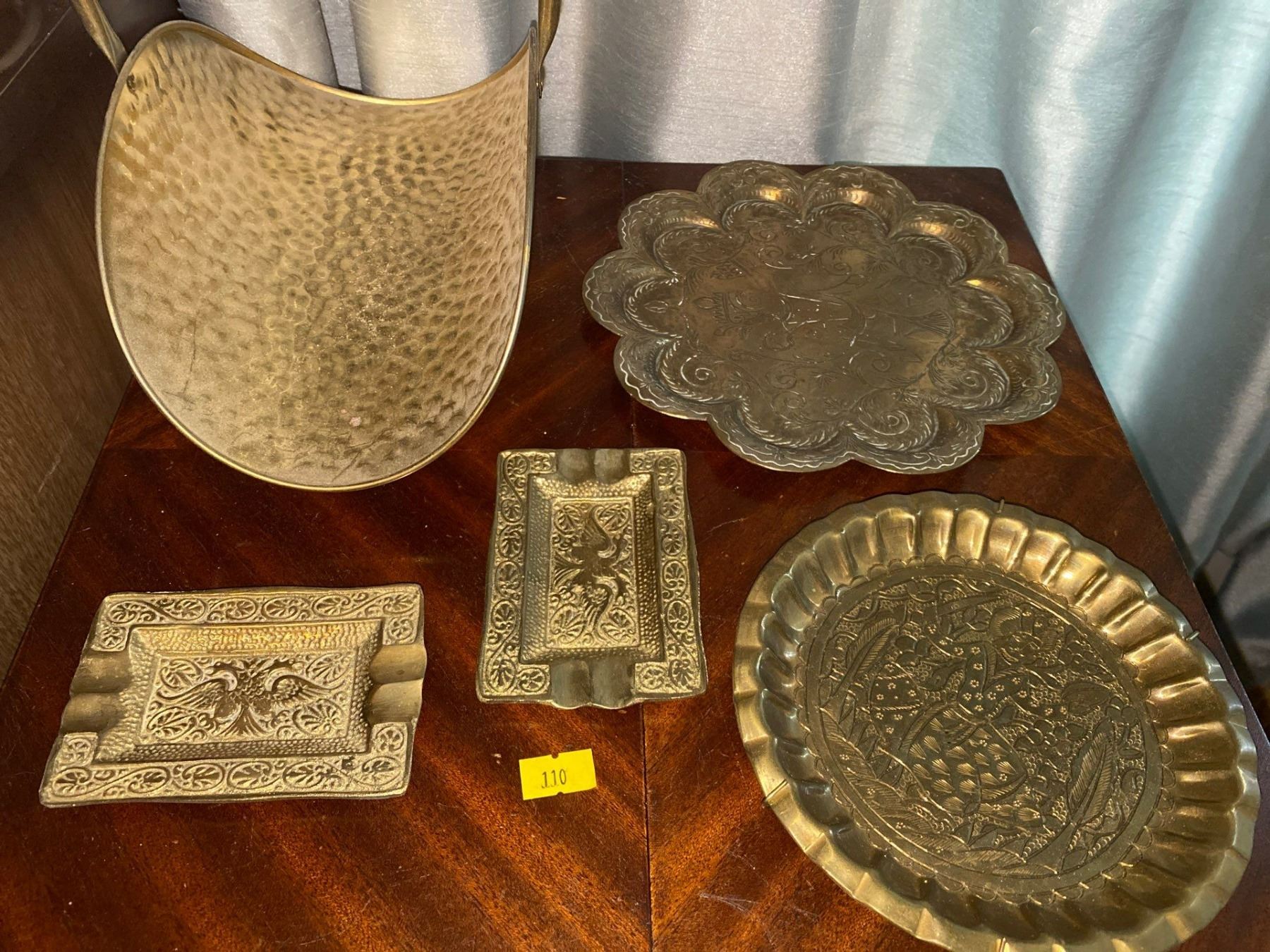 Assortment Of Antique Brass Plates And Ashtrays