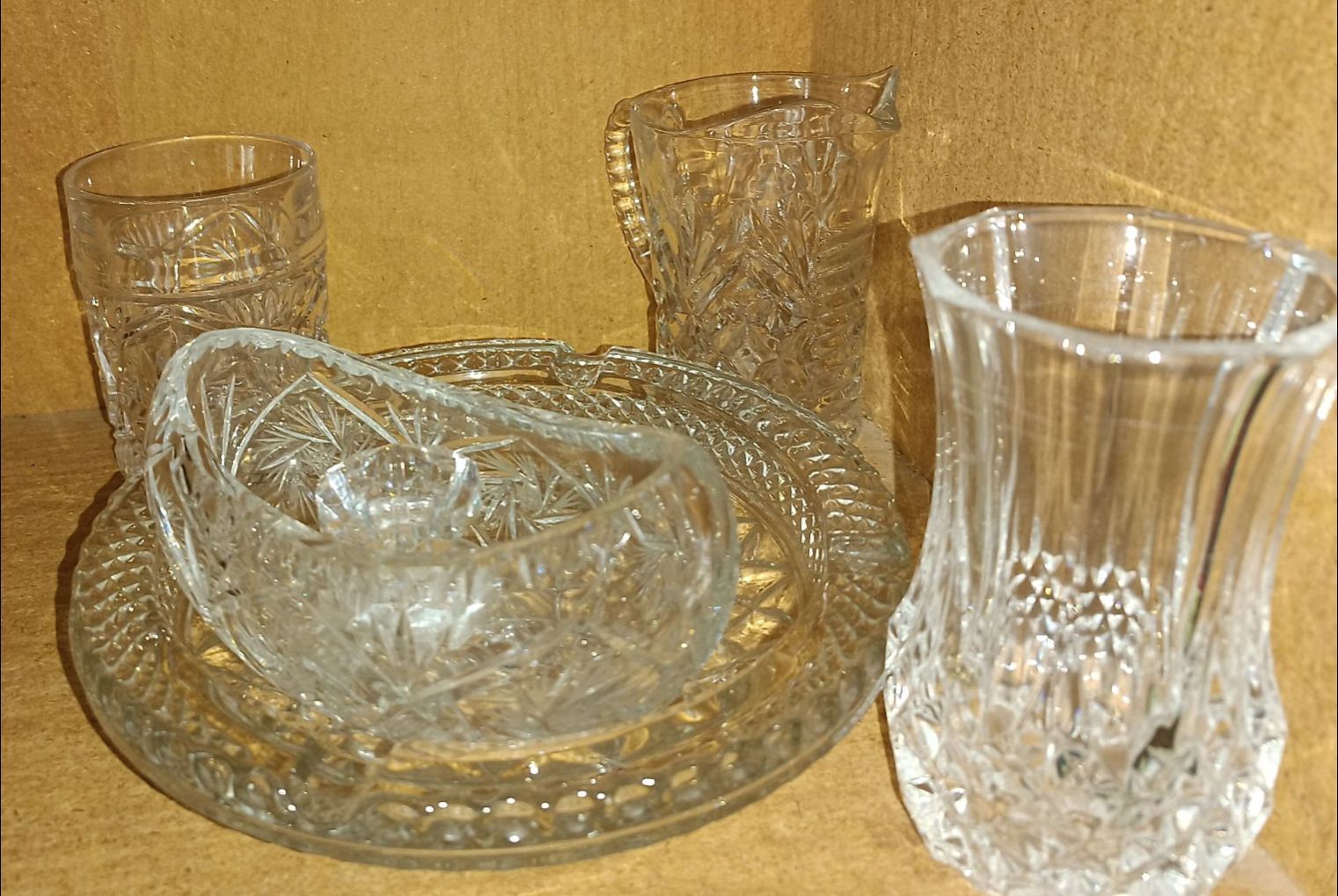 Assortment Of Crystal Pieces W/ Large Treasure Chest 23w" x13d" x 11" tall