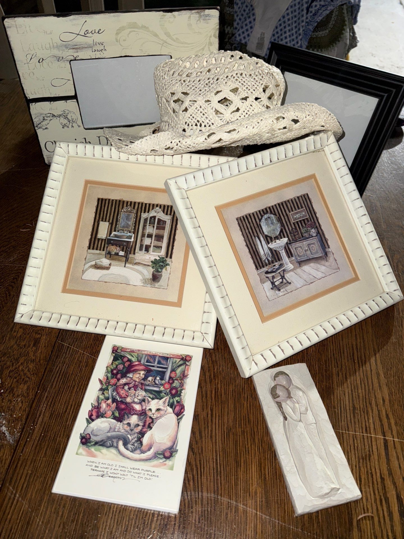 Assortment Of Home Decor w, White Cowgirl Hat- Picture Frames, Pictures ++More Goodies