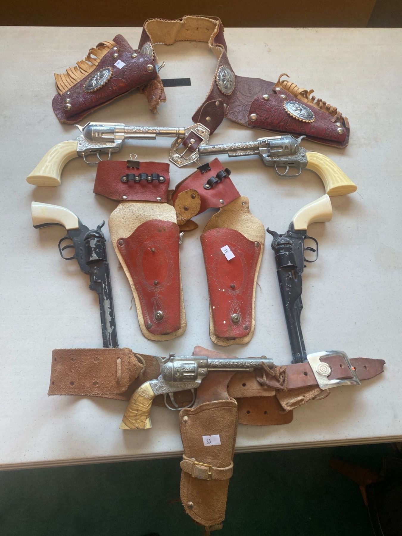 Assortment Of Vintage Collectable Capguns With Leather Holsters (Sold As Is)