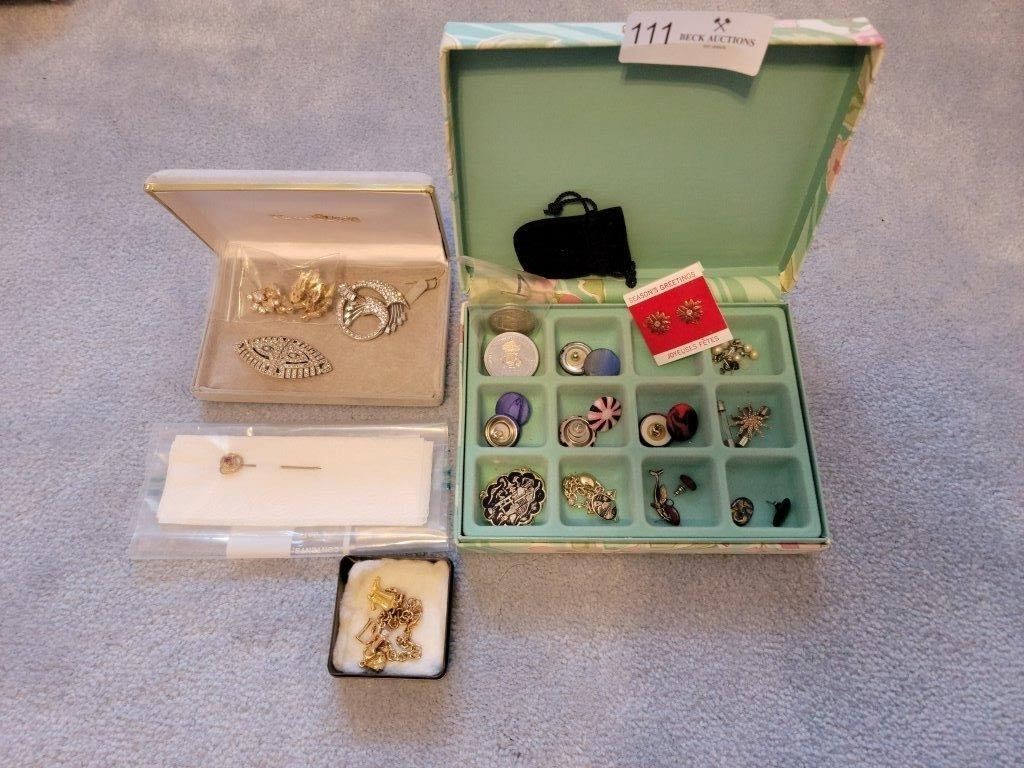 Assortment of Earrings, Brooches, Charm Bracelet & Jewelry Box