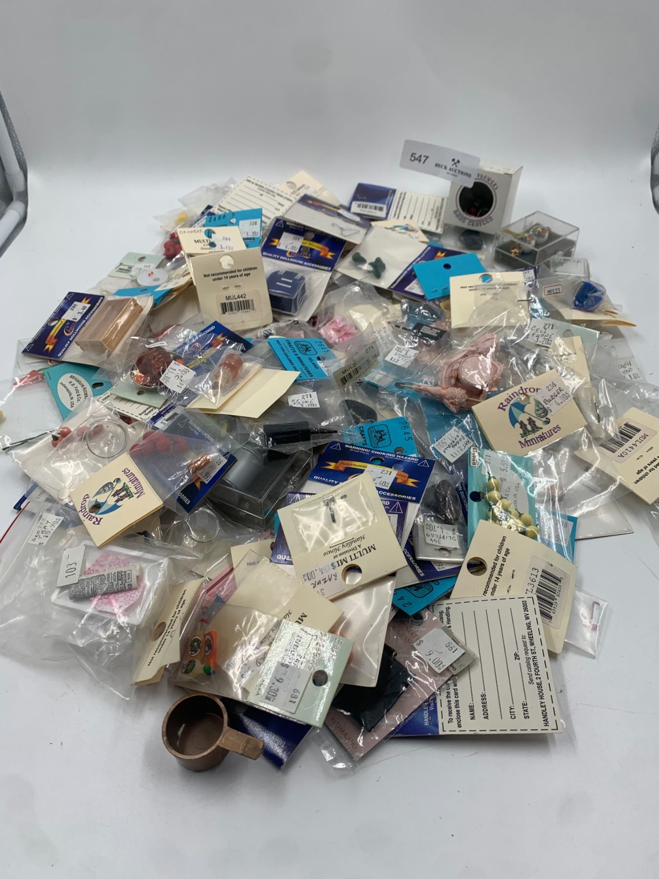 Assortment of Miniature Dollhouse Accessories (Food, Dishes, Clothing)