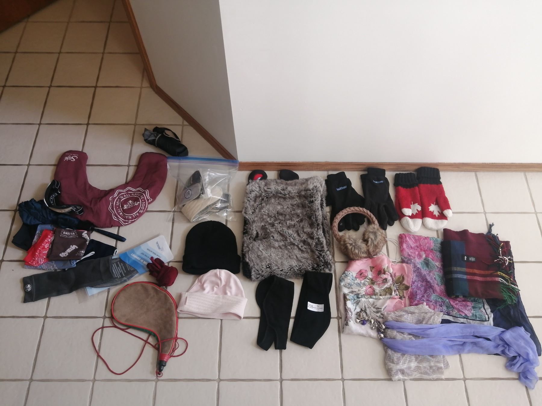 Assortment of Outerwear - Includes Gloves, Fur Neck Warmer, Hats, Scarves, Umbrellas, and More!