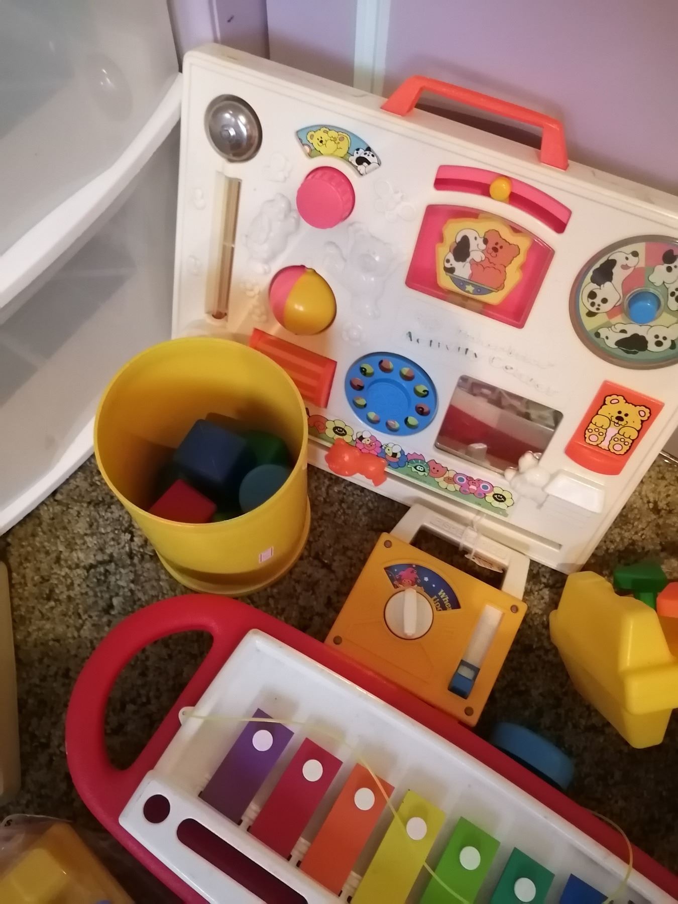 Assortment of Vintage 1980s Fisher-Price Toys - Also Includes Organizer and Kids Toy Chair