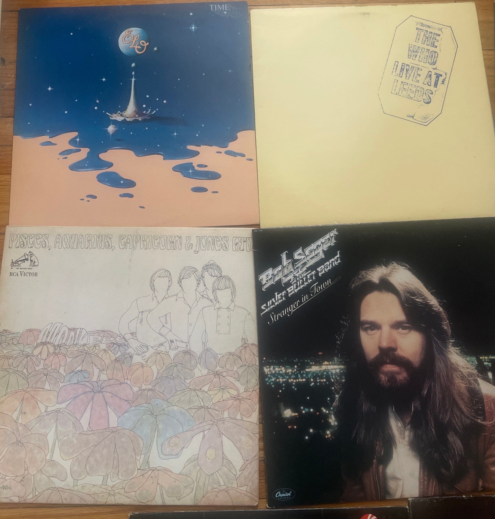 Assortment of Vintage Vinyl Albums The Who, Lighthouse, Bob Seger and the Silver Bullet, Golden Earring, The Guess Who & Styx Records