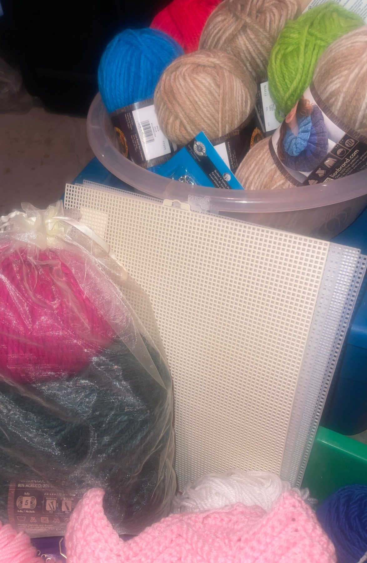 Assortment of Yarn, Wool & Other Needle Crafts ++Bonus Crafting Supplies