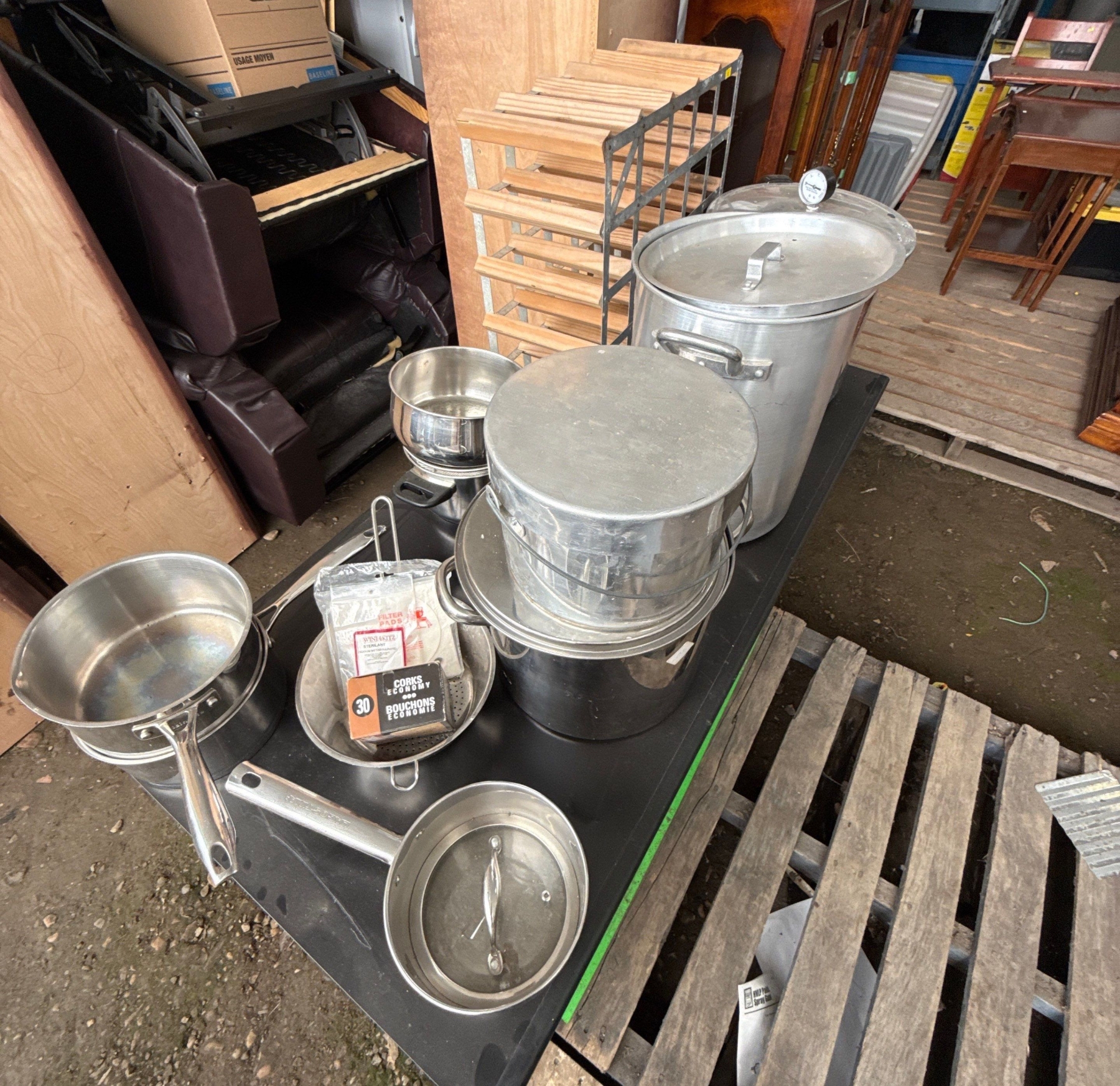 Assortment of cookware and Wine Rack