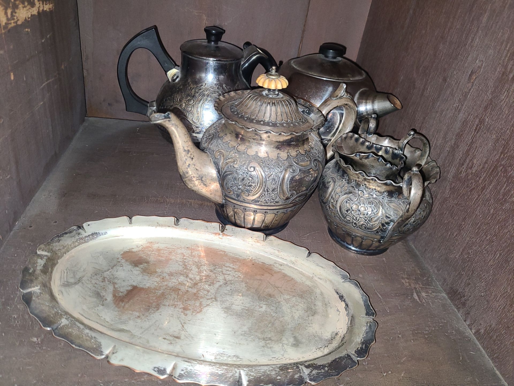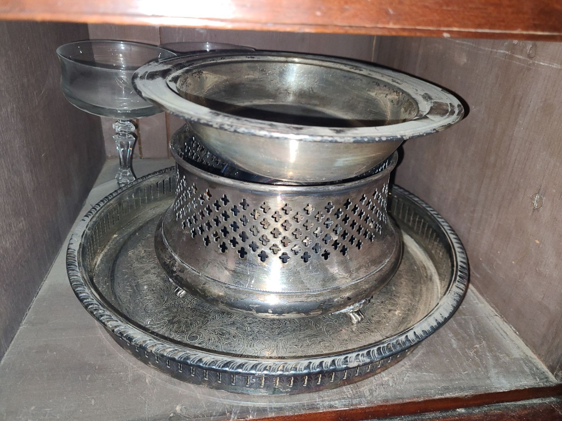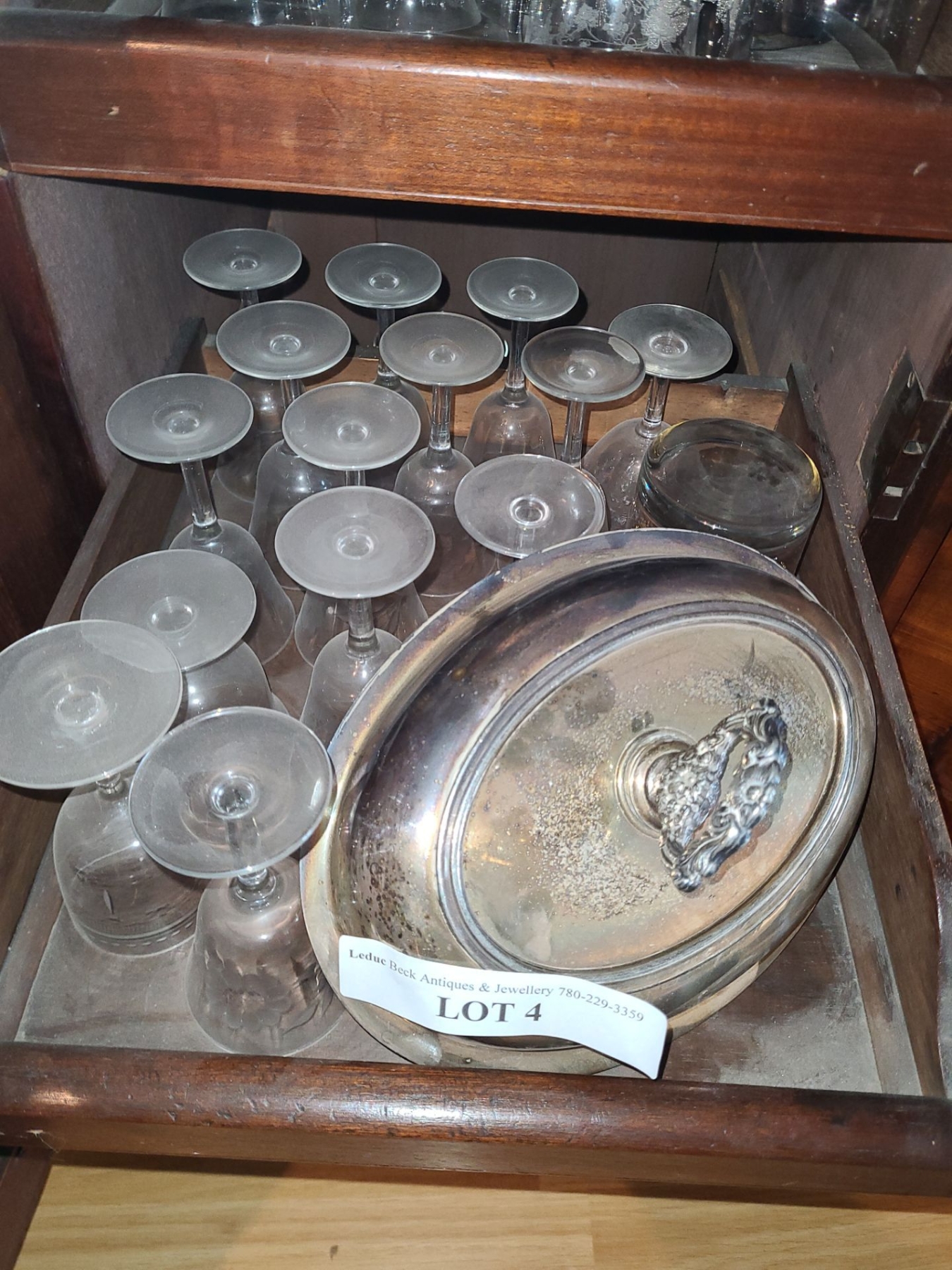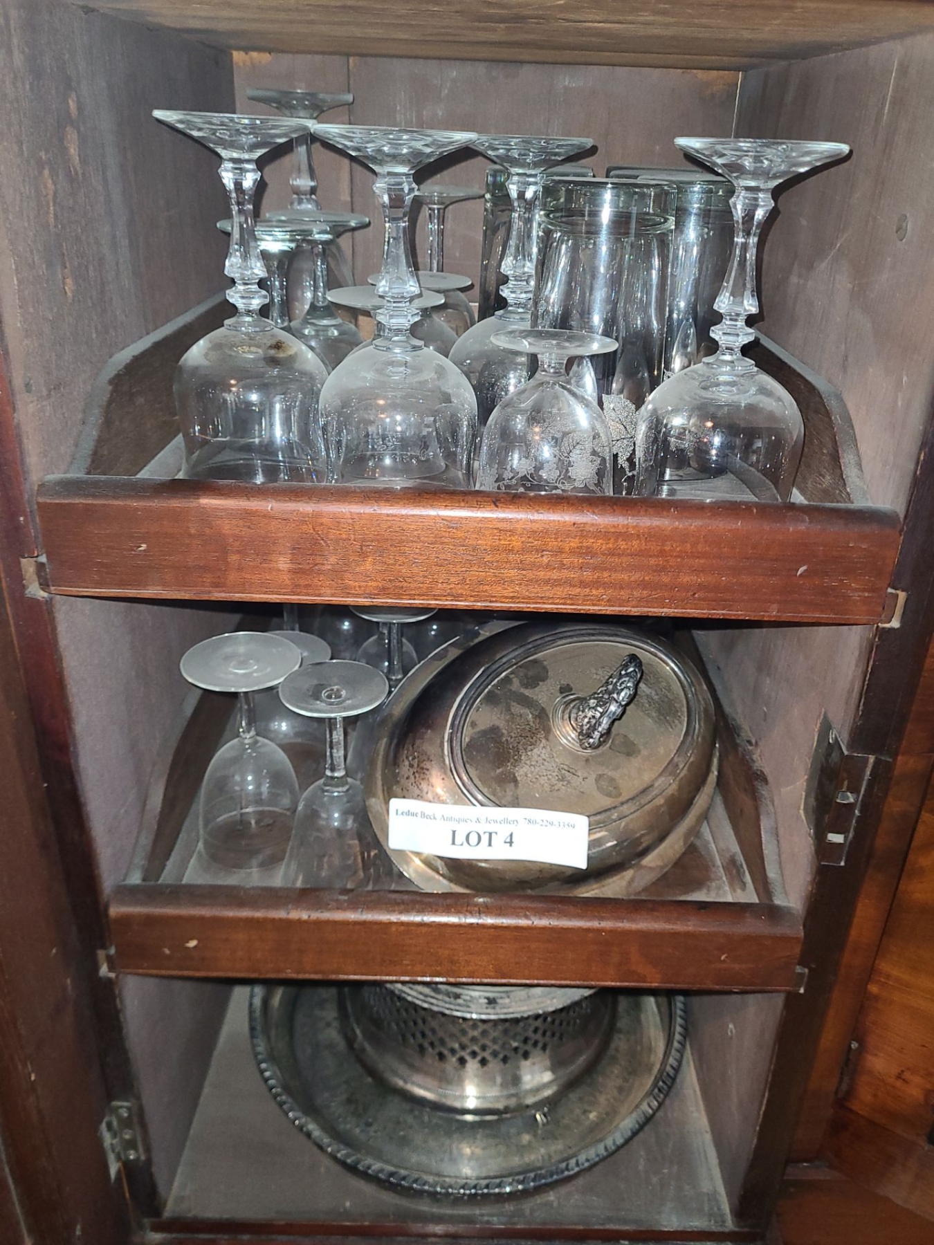 Asst Crystal & Wine Glasses, Silver Plated Tea Set, Platters and more
