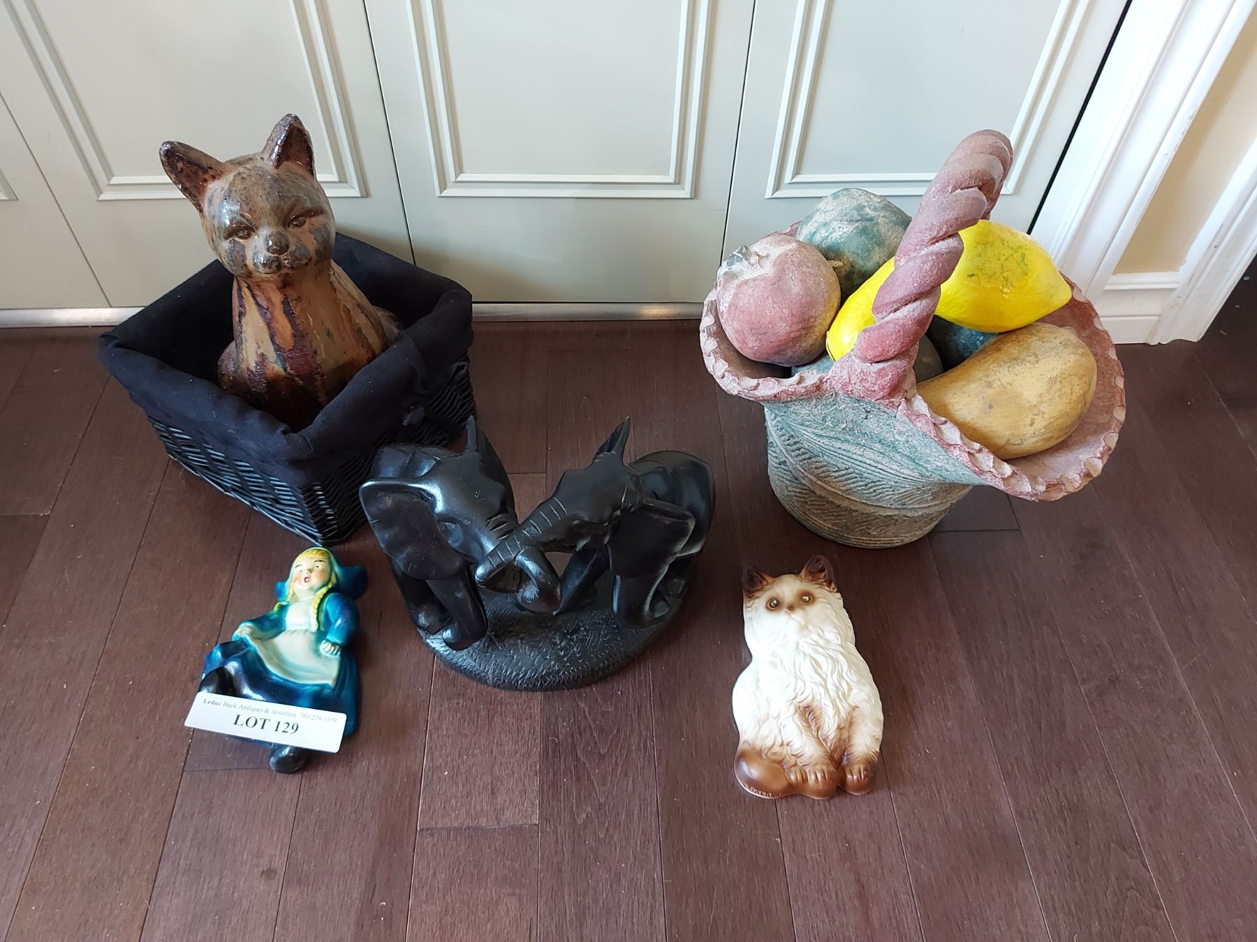 Asst home décor - elephants, cats, dutch girl, clay fruit basket