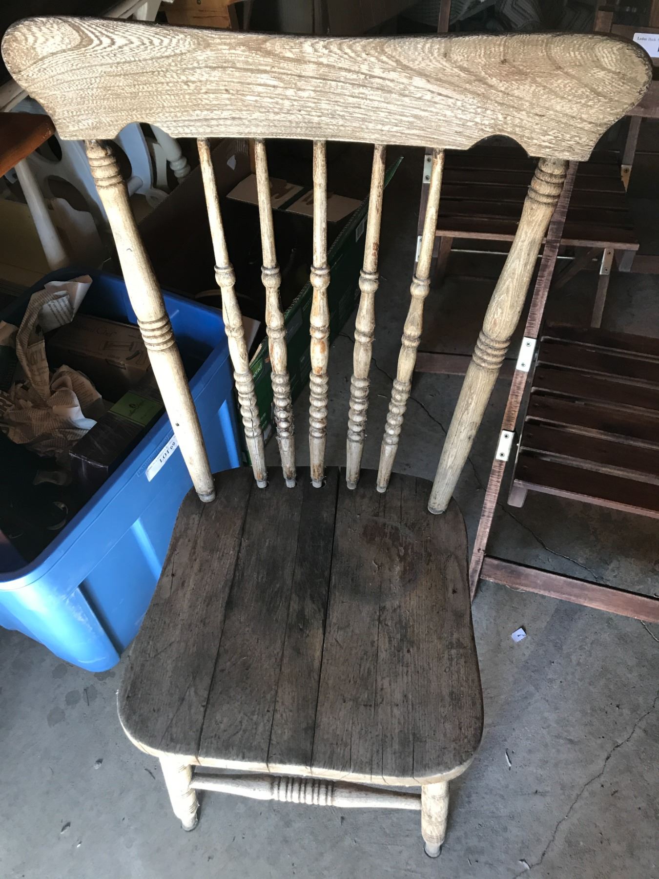 Asst wood folding chairs (x3), wooden rocking chair (ornate, carved)