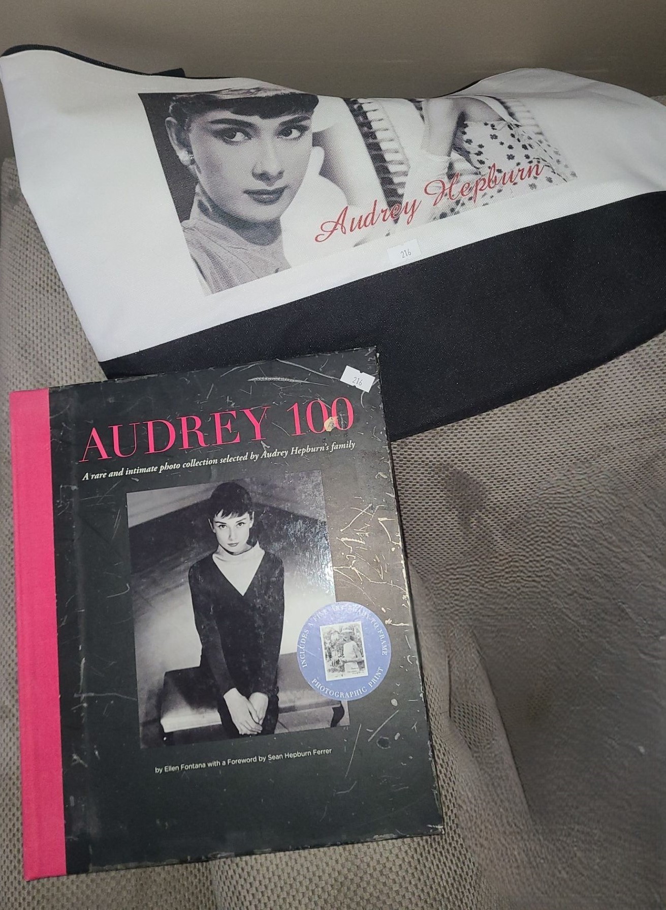Audrey Hepburn Wall Print 39 W, 27 T, Tote Bag, and Book