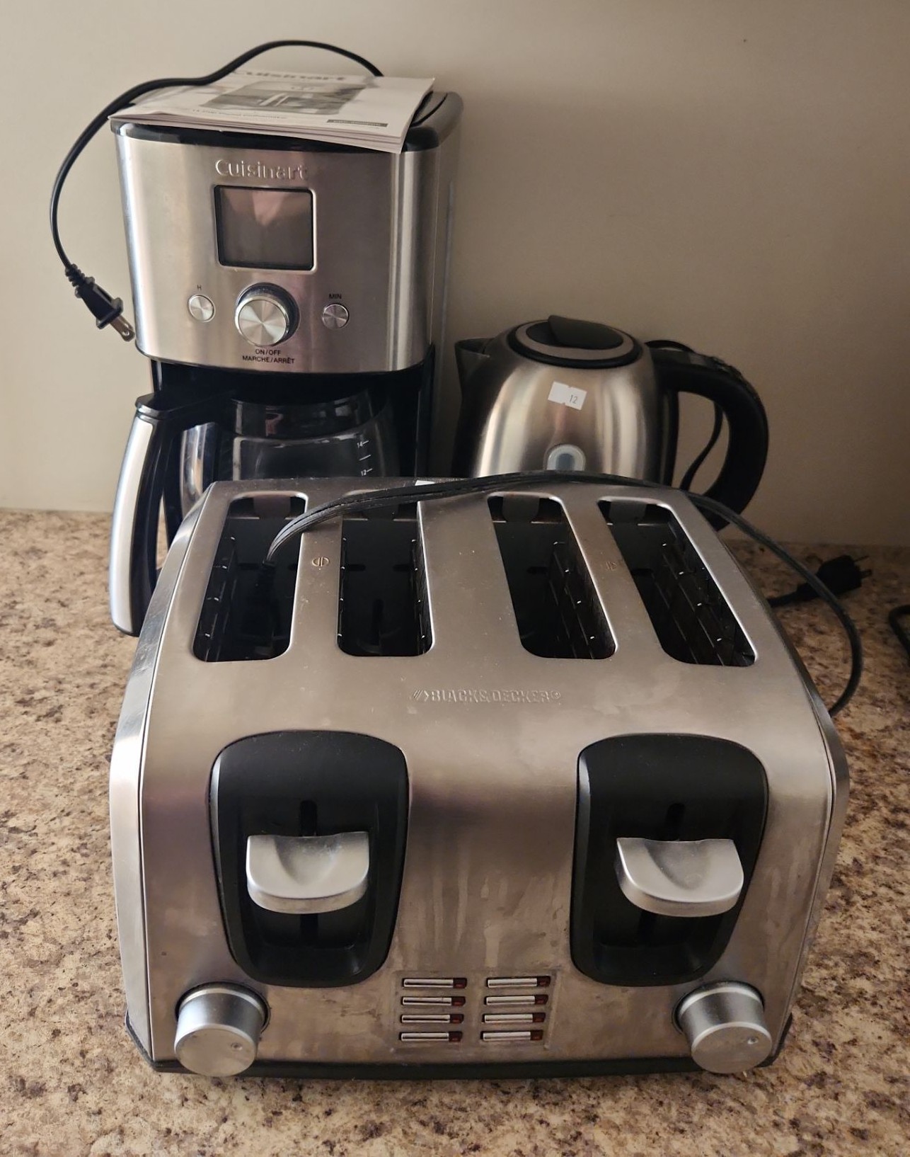 B&D 4 Slice Toaster Model T4707SKT, Cuisinart Coffee Maker Model CBC-6900PCC ,B&D Kettle Model KE5030SKT