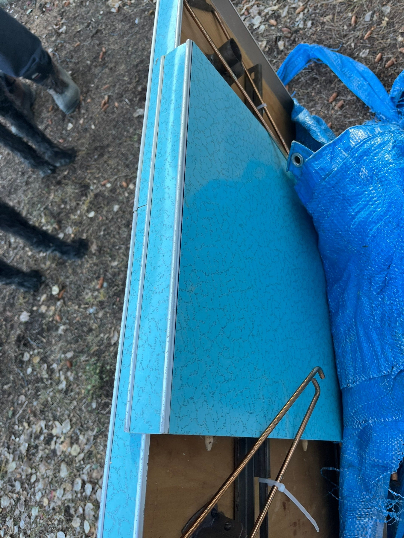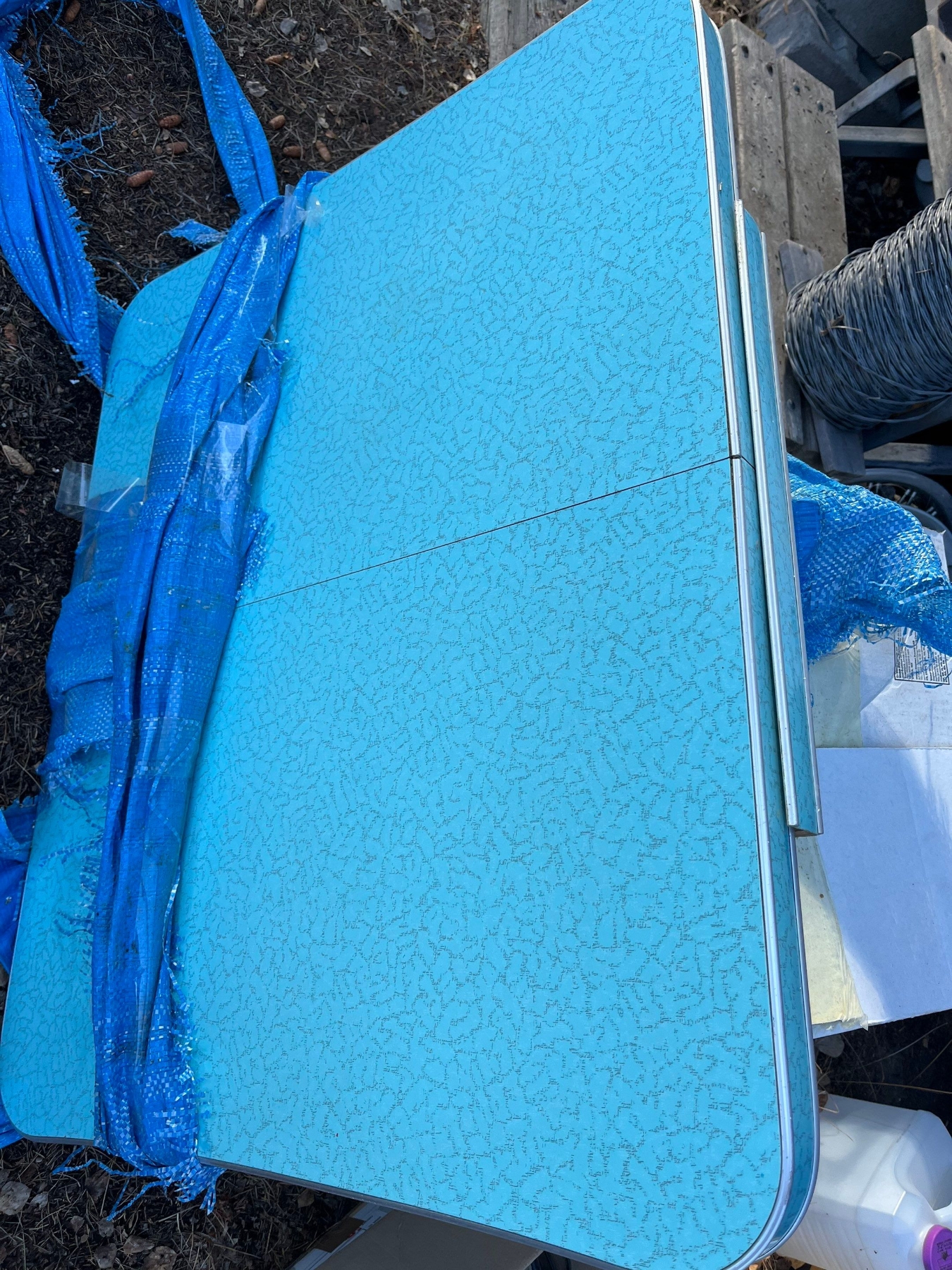 Baby blue 1950s acrylic table with extension and stainless steel legs in great
