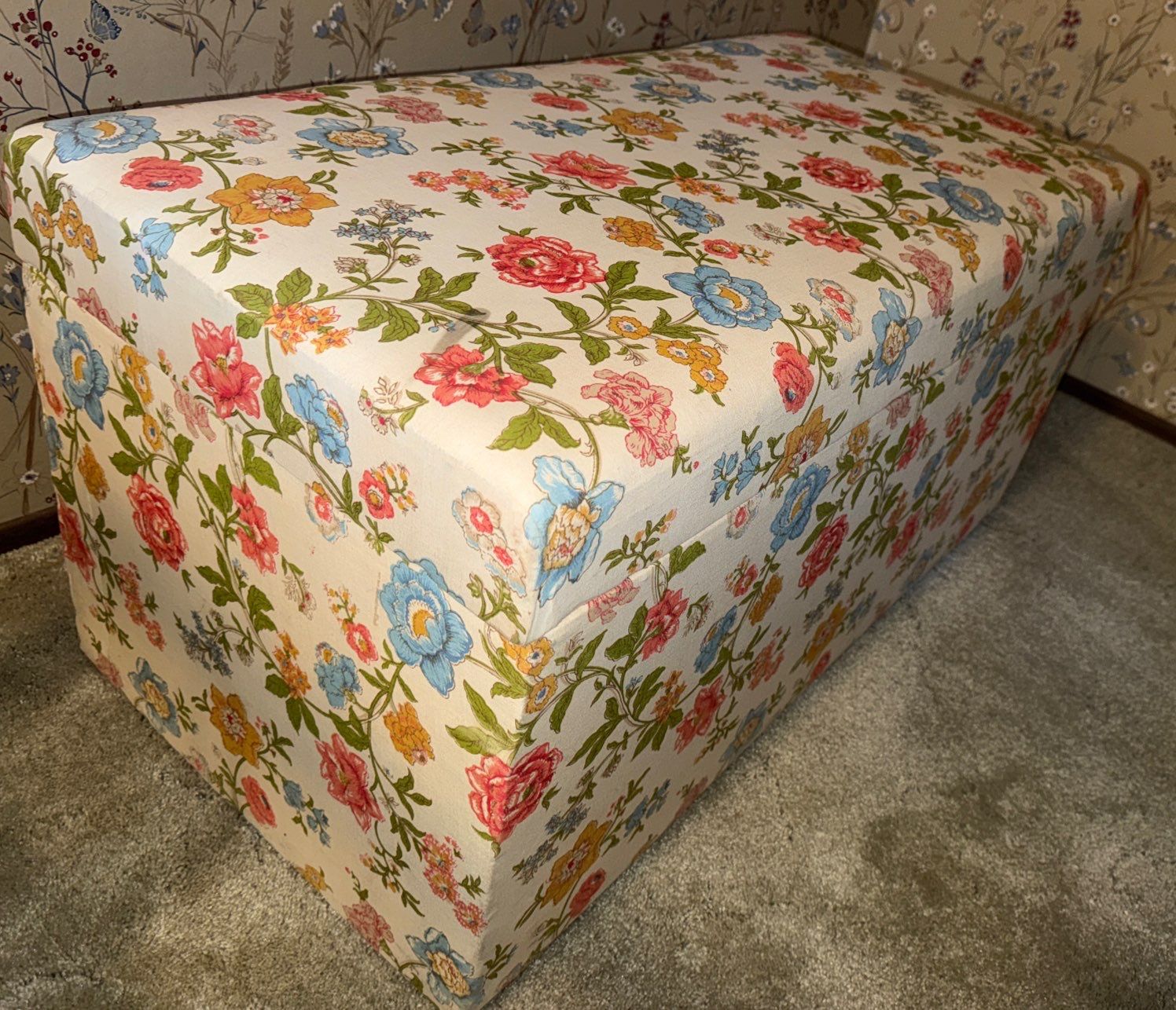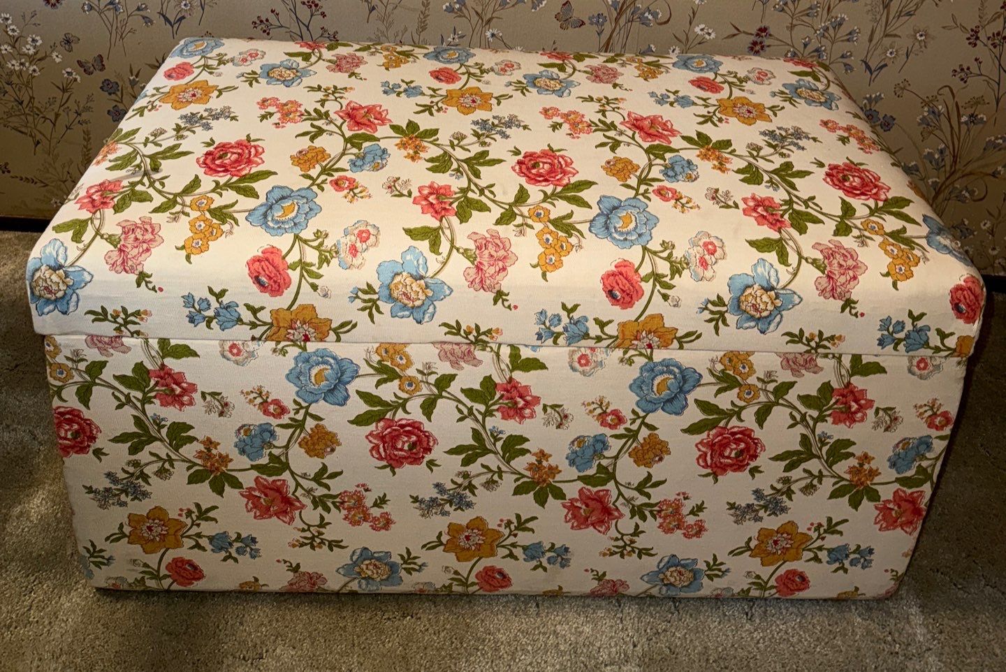 Back Of The Bed Floral Upholstered Clothing Or Blanket Chest