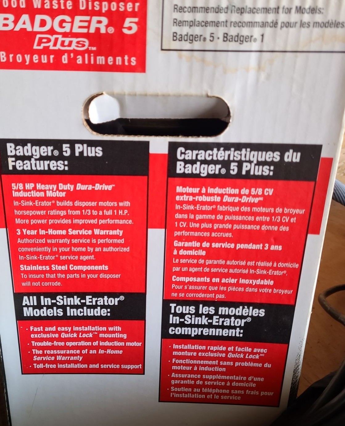 Badger 5 Plus Food Waste Disposer 5/8 HP Heavy Duty Model
