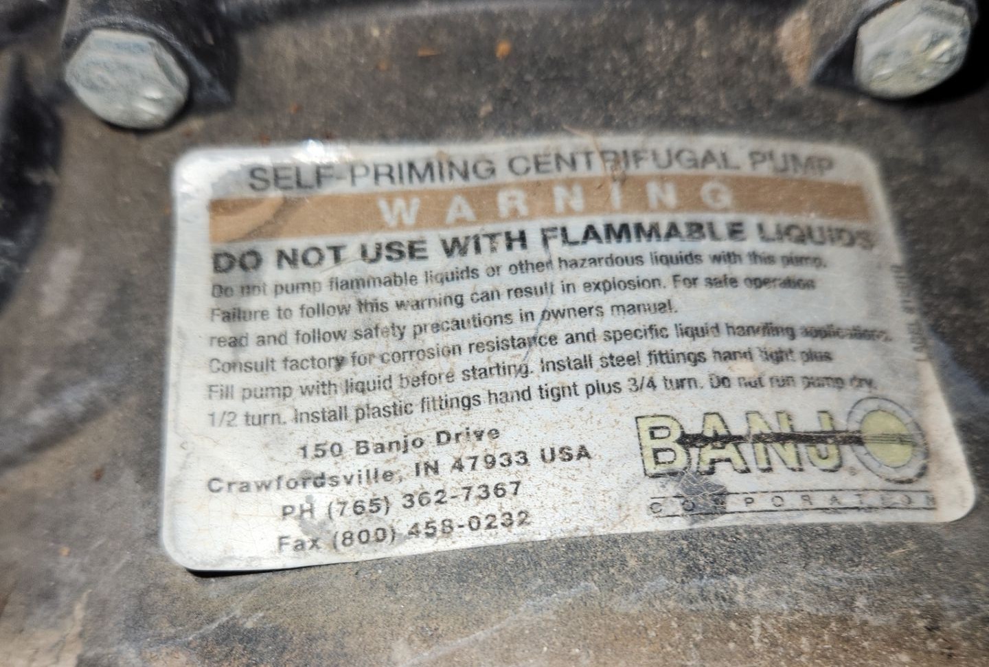Banjo Self-Priming Centrifugal Pump, Very Heavy, Bring Assistance