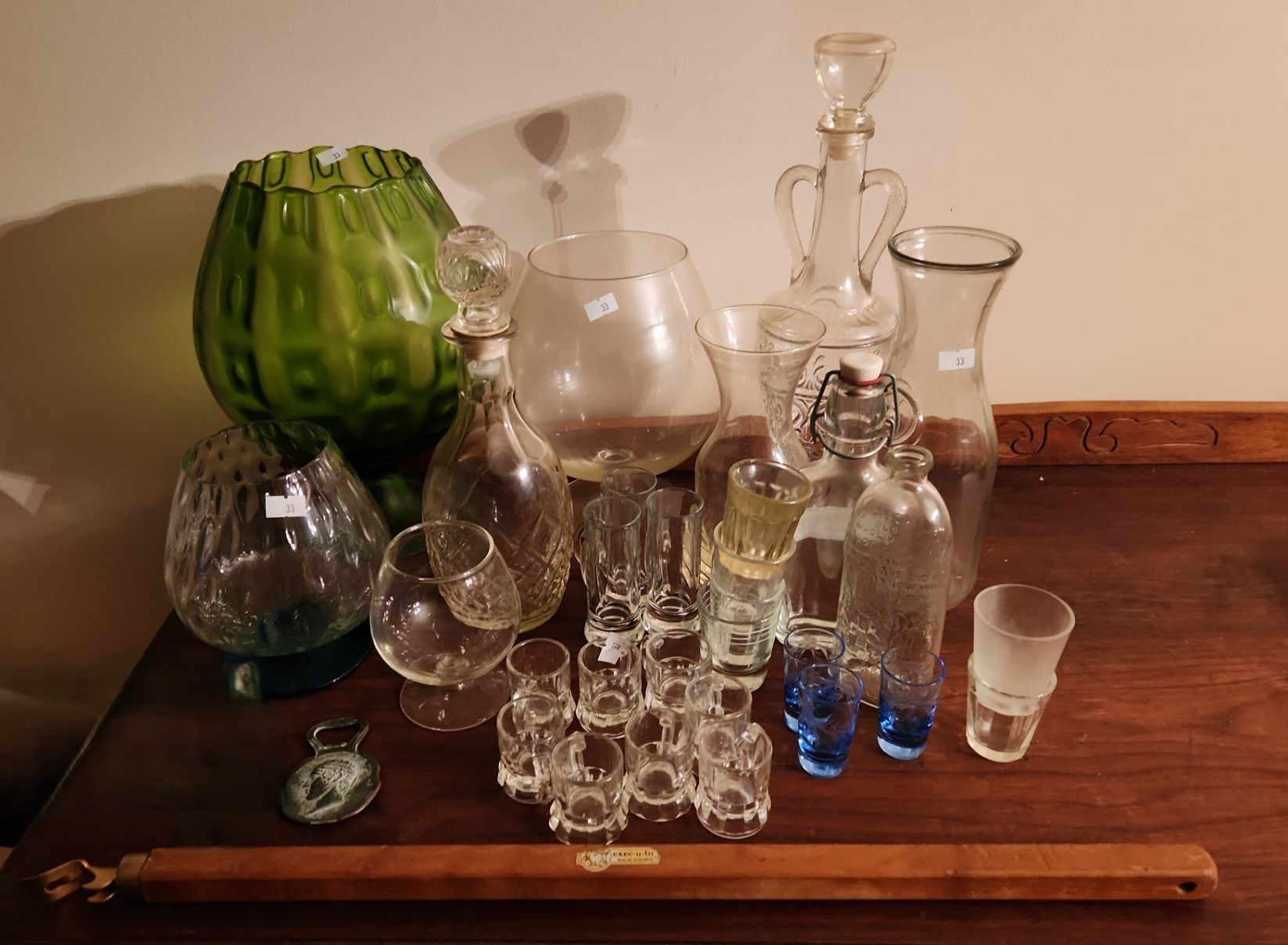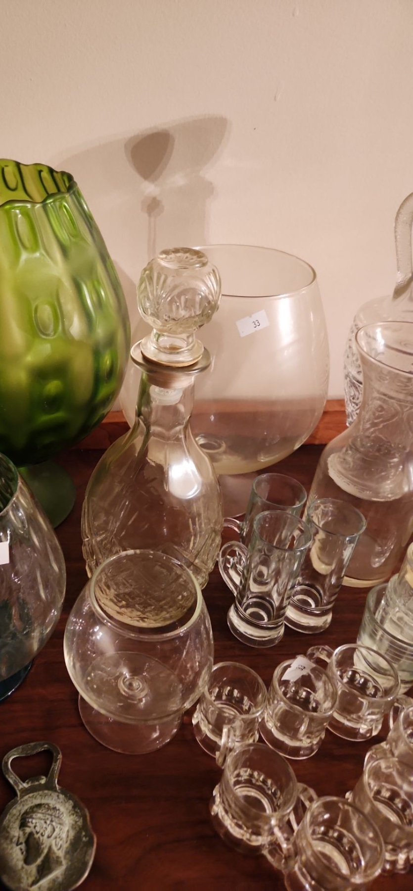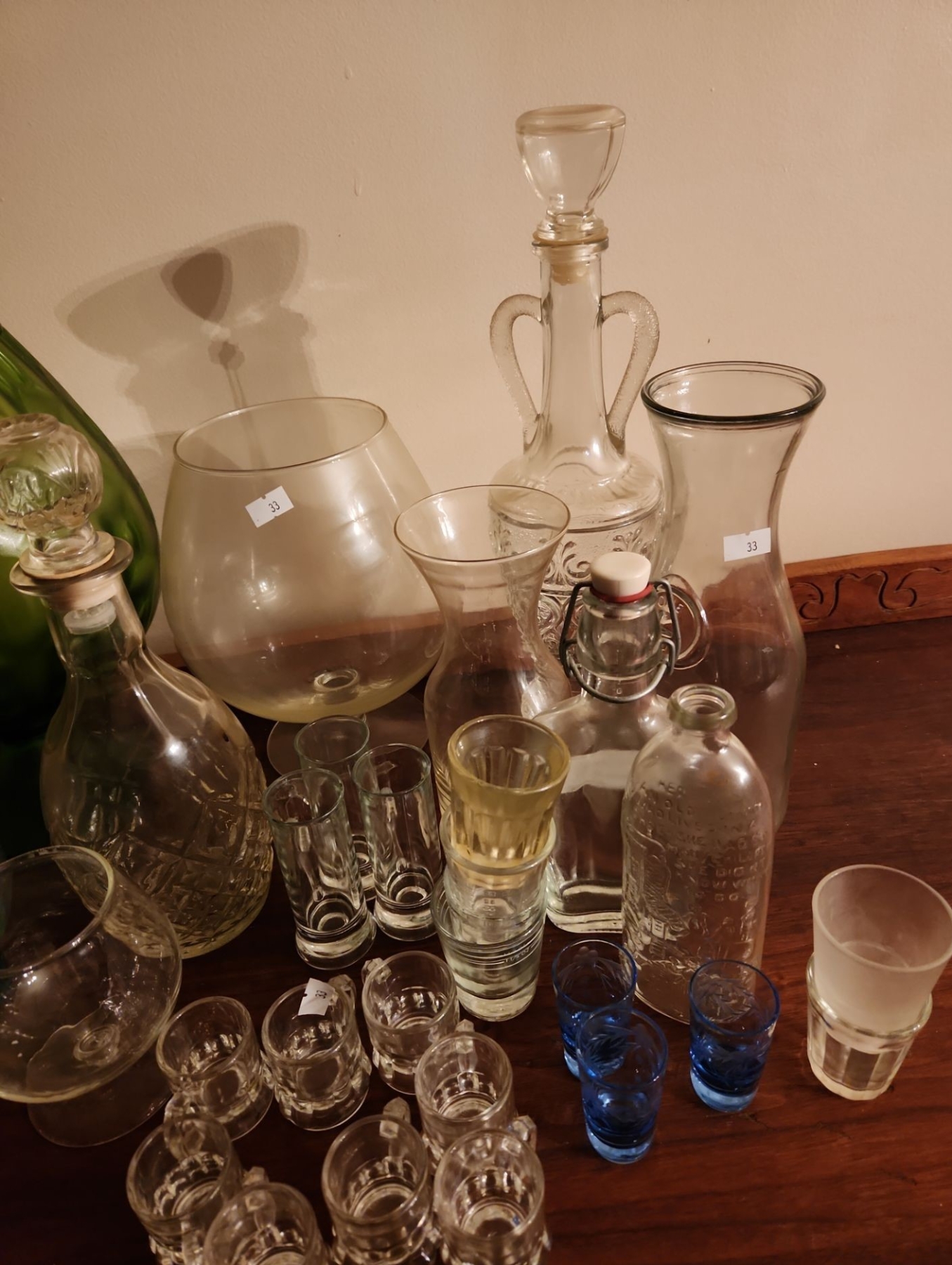 Barware Including: Decorative Brandy Glasses, Green: 12 T, Decanter 14 T, Shot Glasses, and More!