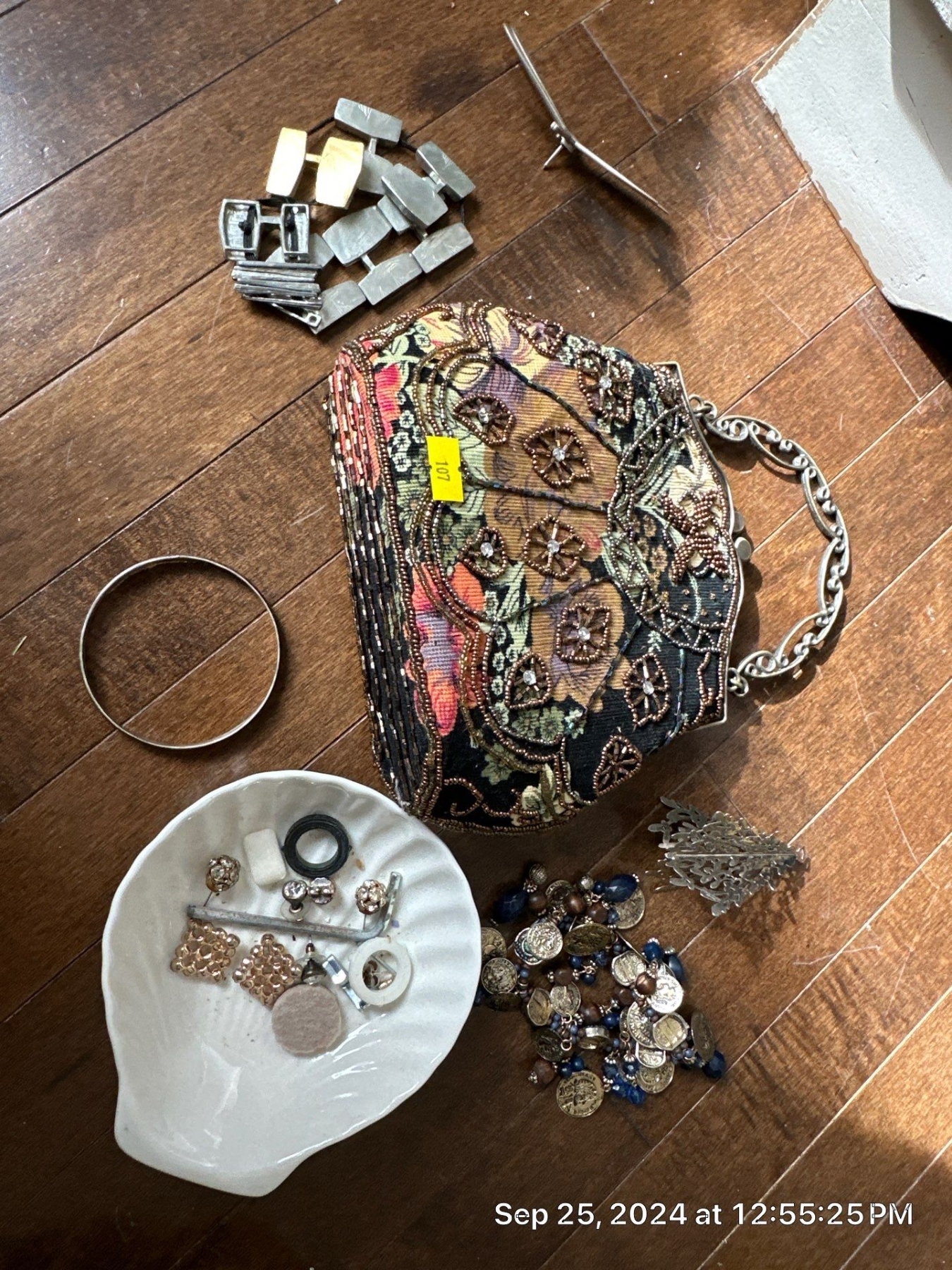 Beaded Handbag w/ Miscellaneous Costume Jewelry