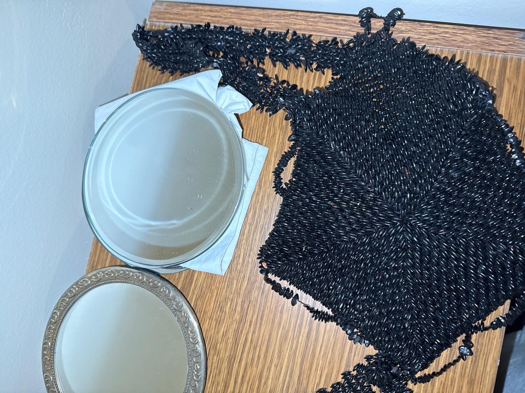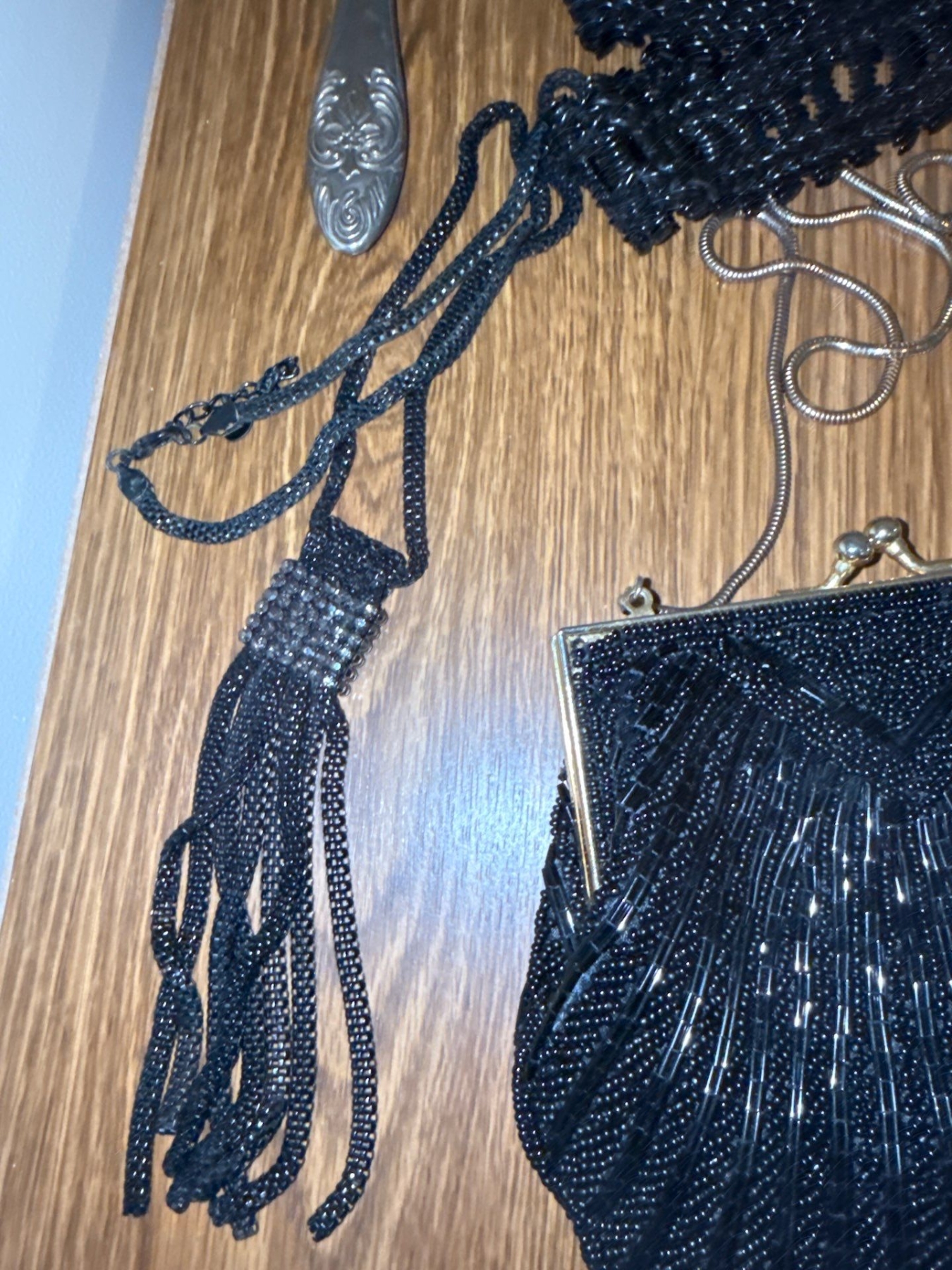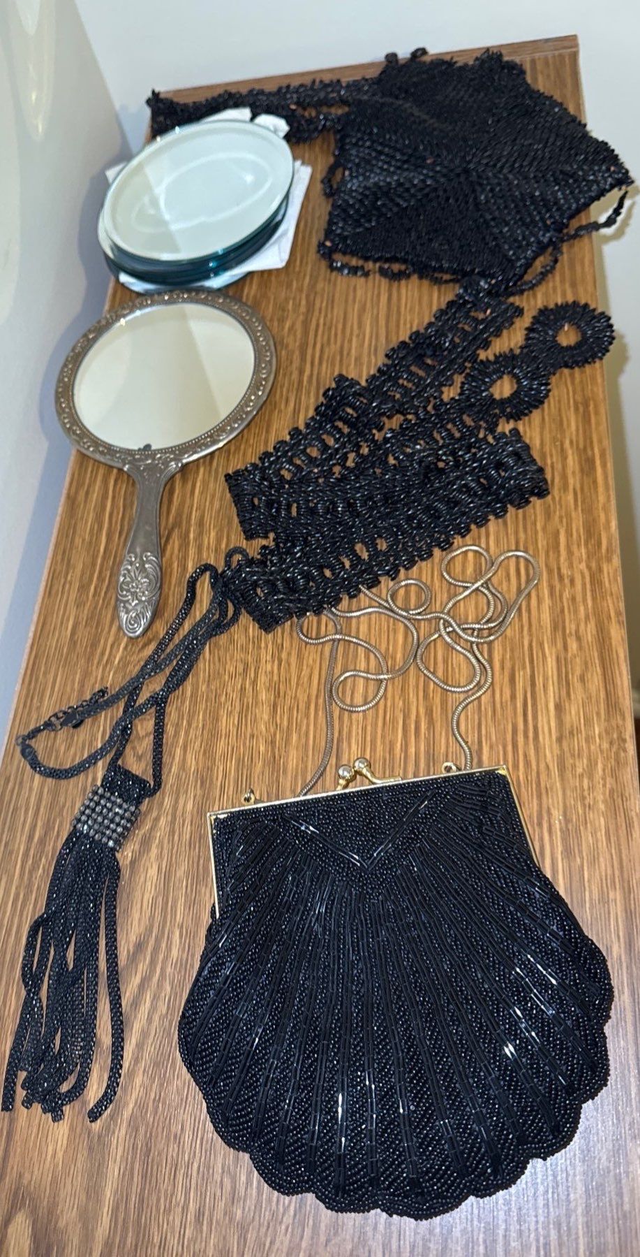 Beading Incl. Lovely Shoulder Bag/Clutch, Vintage Mirror (Needs Reglue), Bead Belt, Necklace, Bag