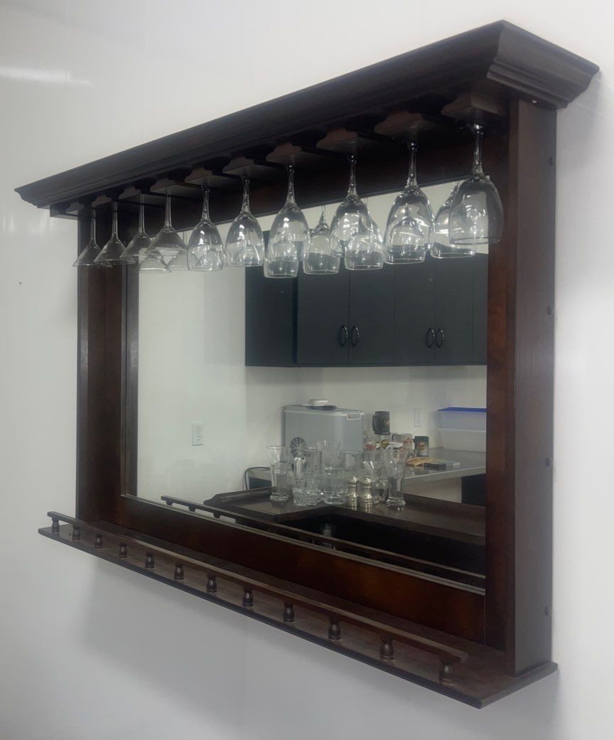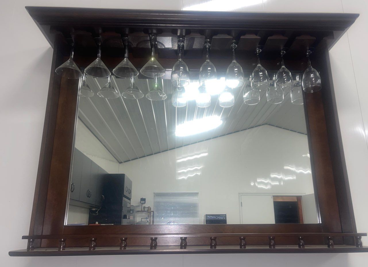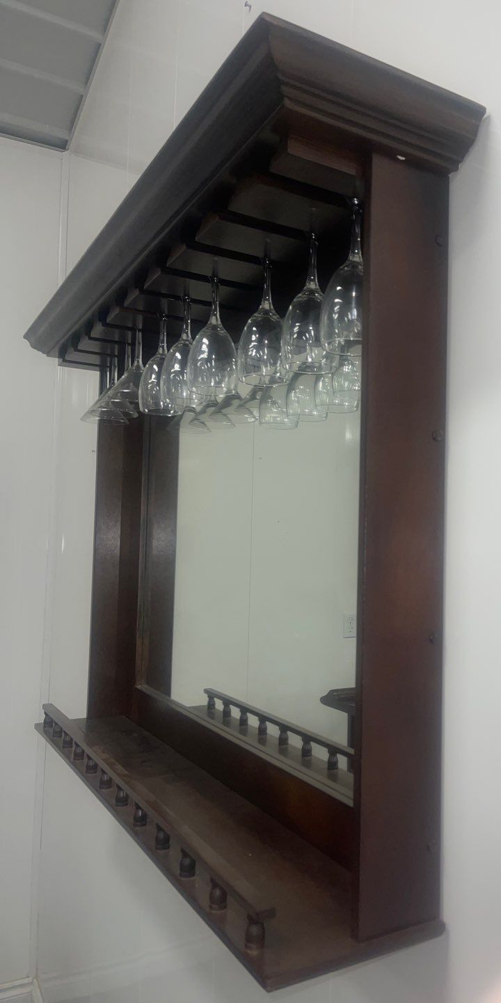 Beautiful Bar Back Mirror / Wine Glass Holders Wall Hanging Wooden Bar Mirror