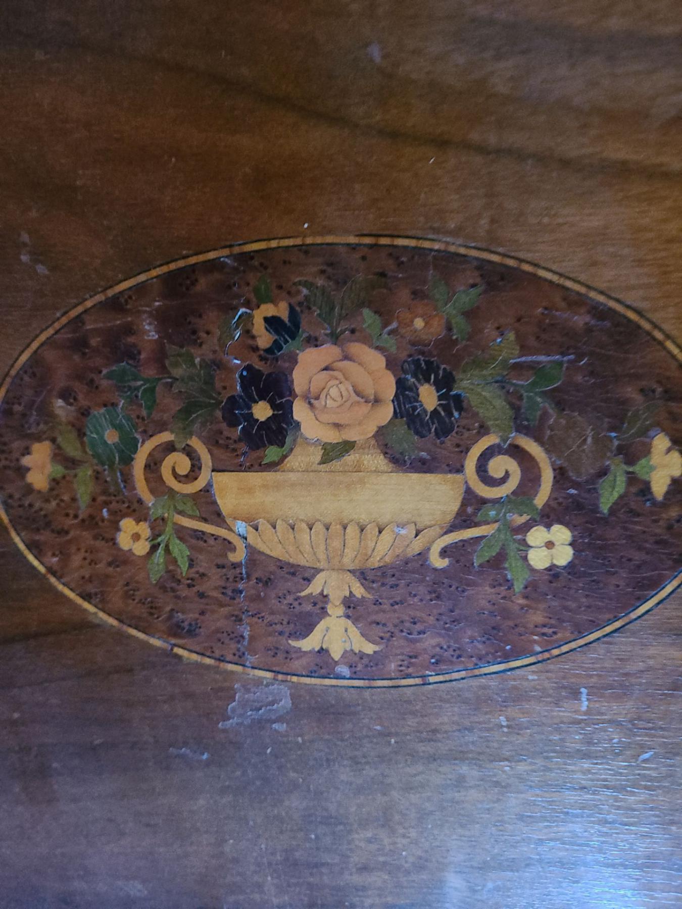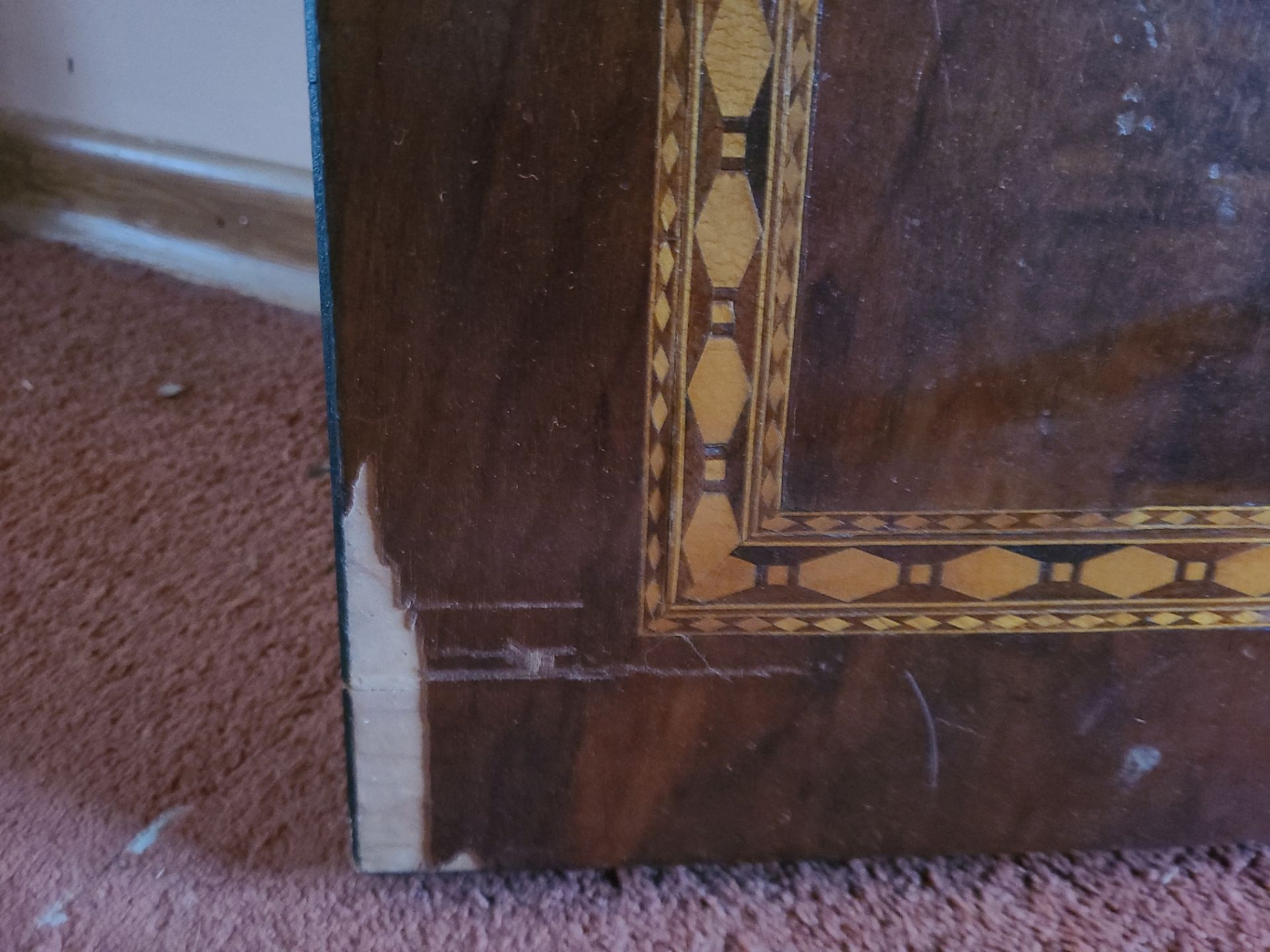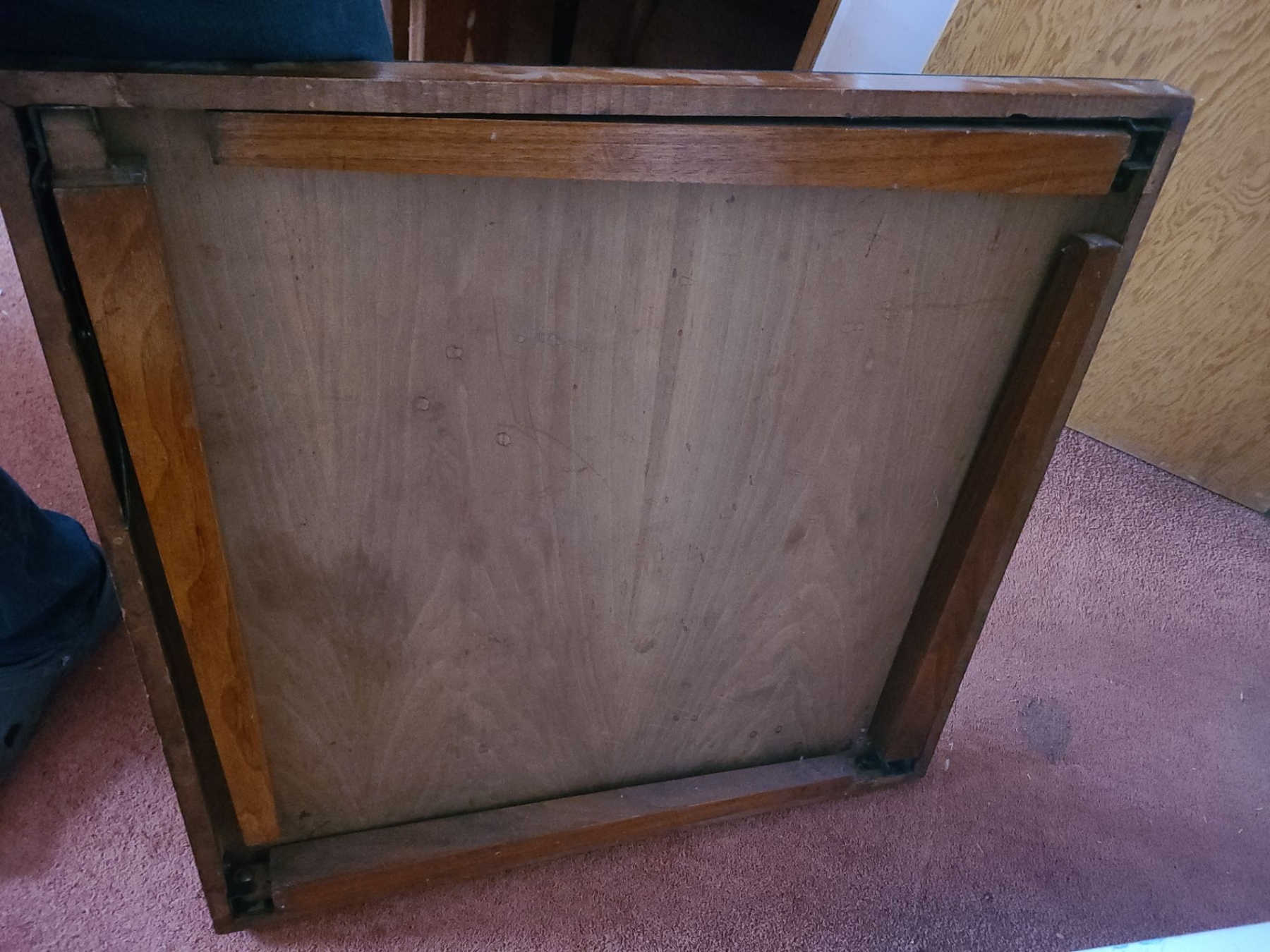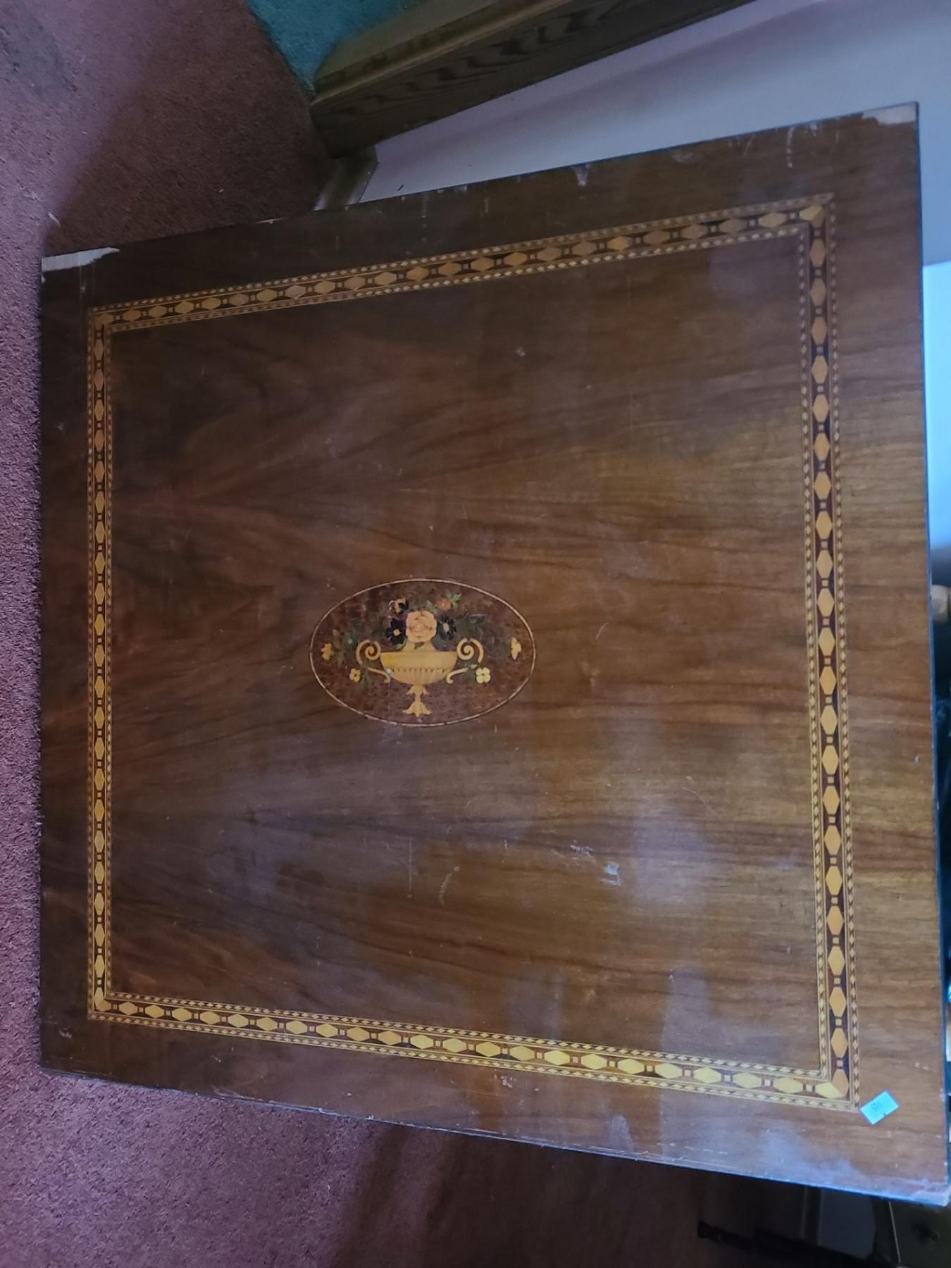 Beautiful Folding Table with Inlaid Veneer, 30 L, 30 W, 26 T When Opened (Some Damage to Top)
