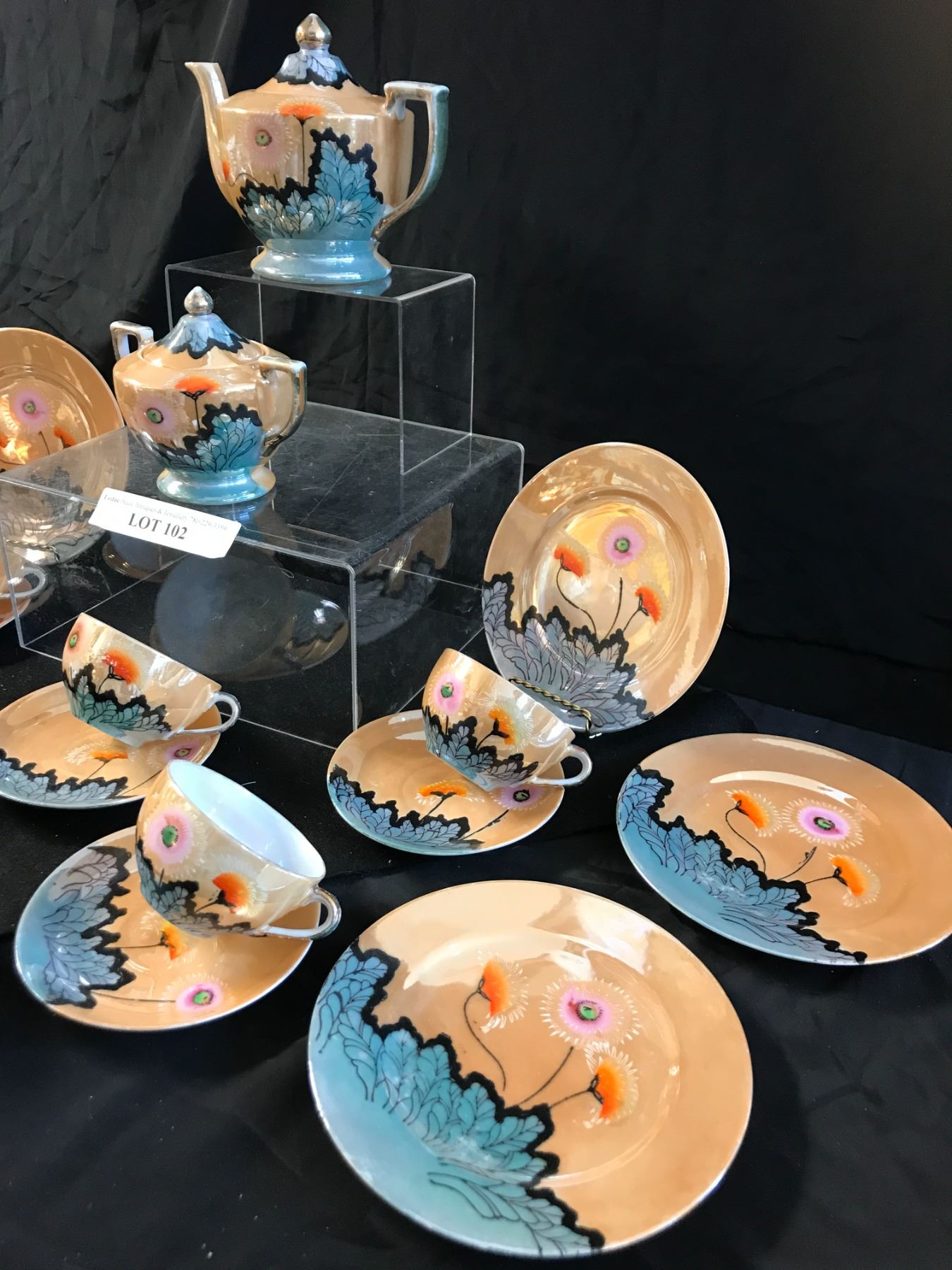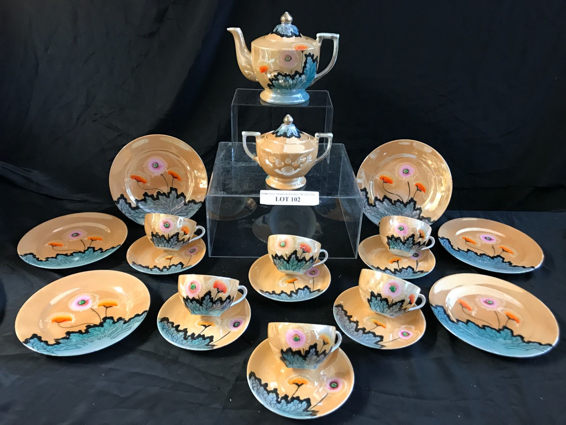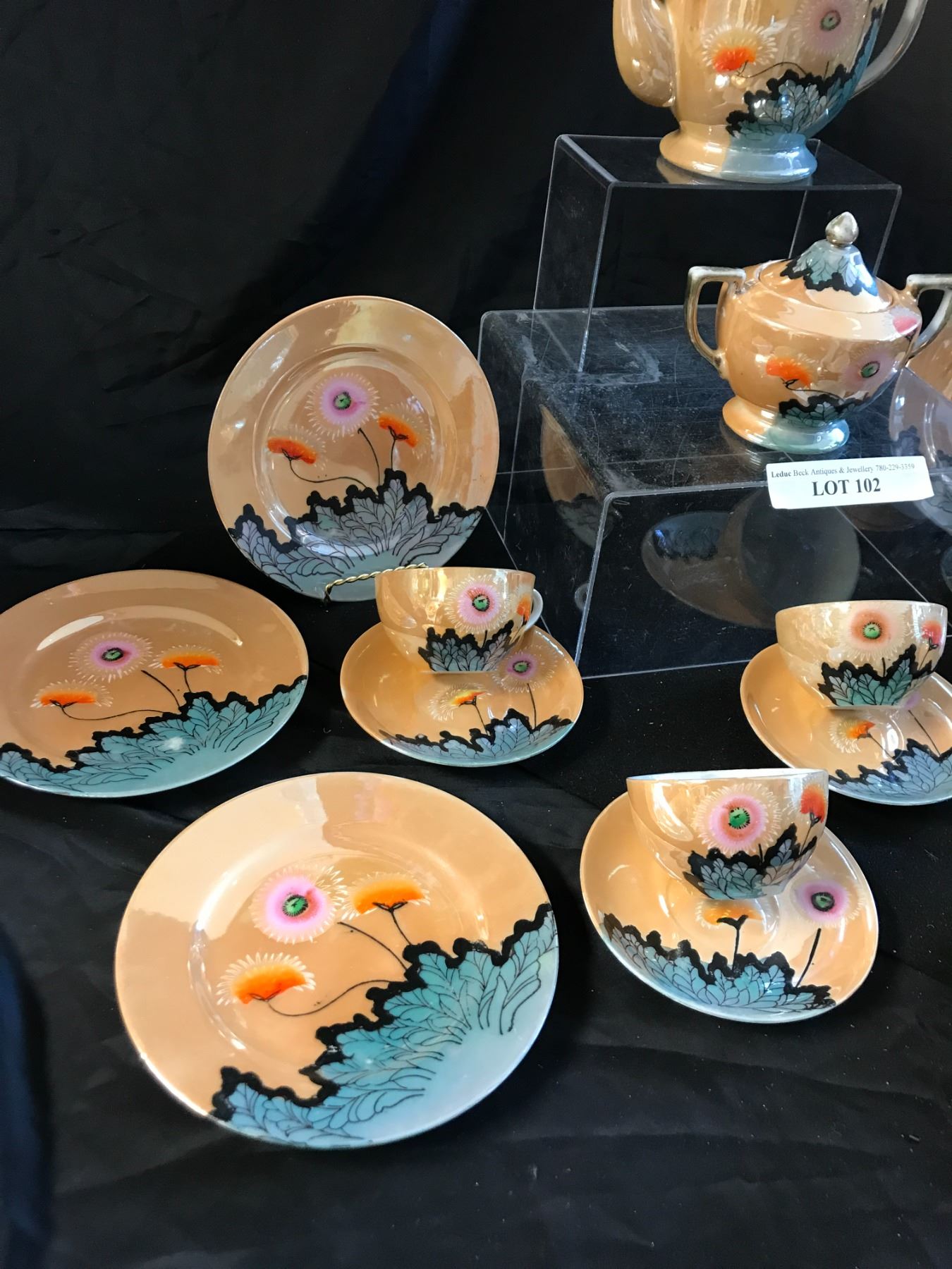 Beautiful Hand Painted Japanese Teapot, Coffee Pot, Teacups/Saucers & Sugar Bowl