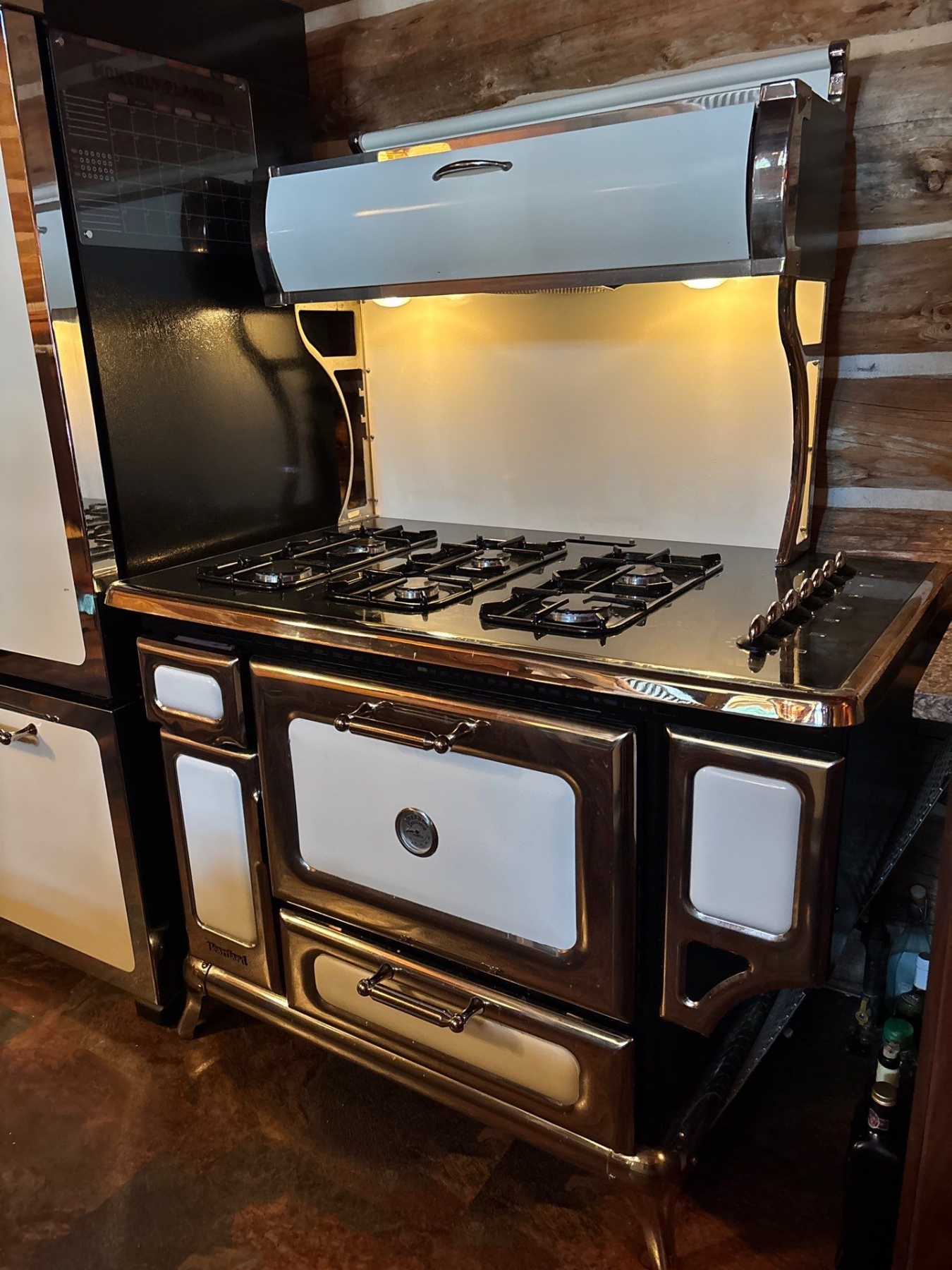 Beautiful Heartland White & Crome 48" Classic Gas Range In Amazing Condition Great Addition To Any Chefs Kitchen Must Pick up @ Auction location