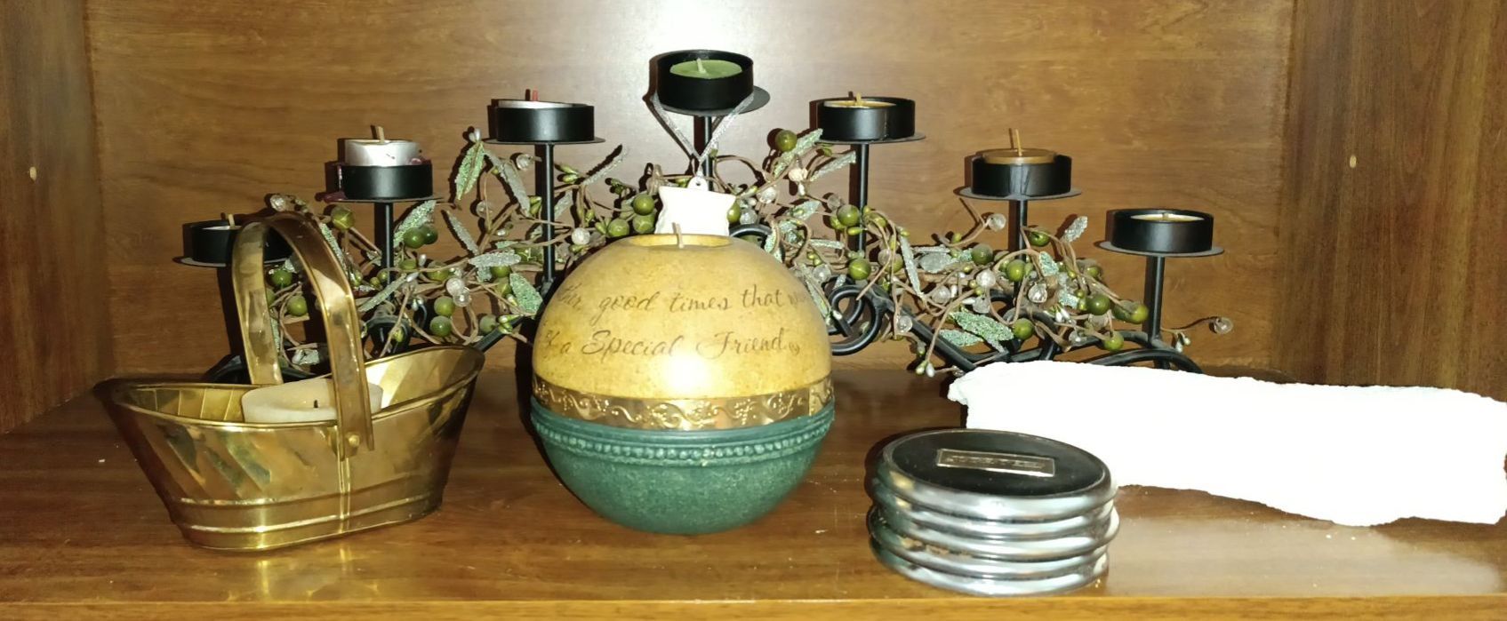 Beautiful Large Multiple Tealight Candle Decor w/ Coral Chunk from the Ocean, Coasters, Brass Basket & More