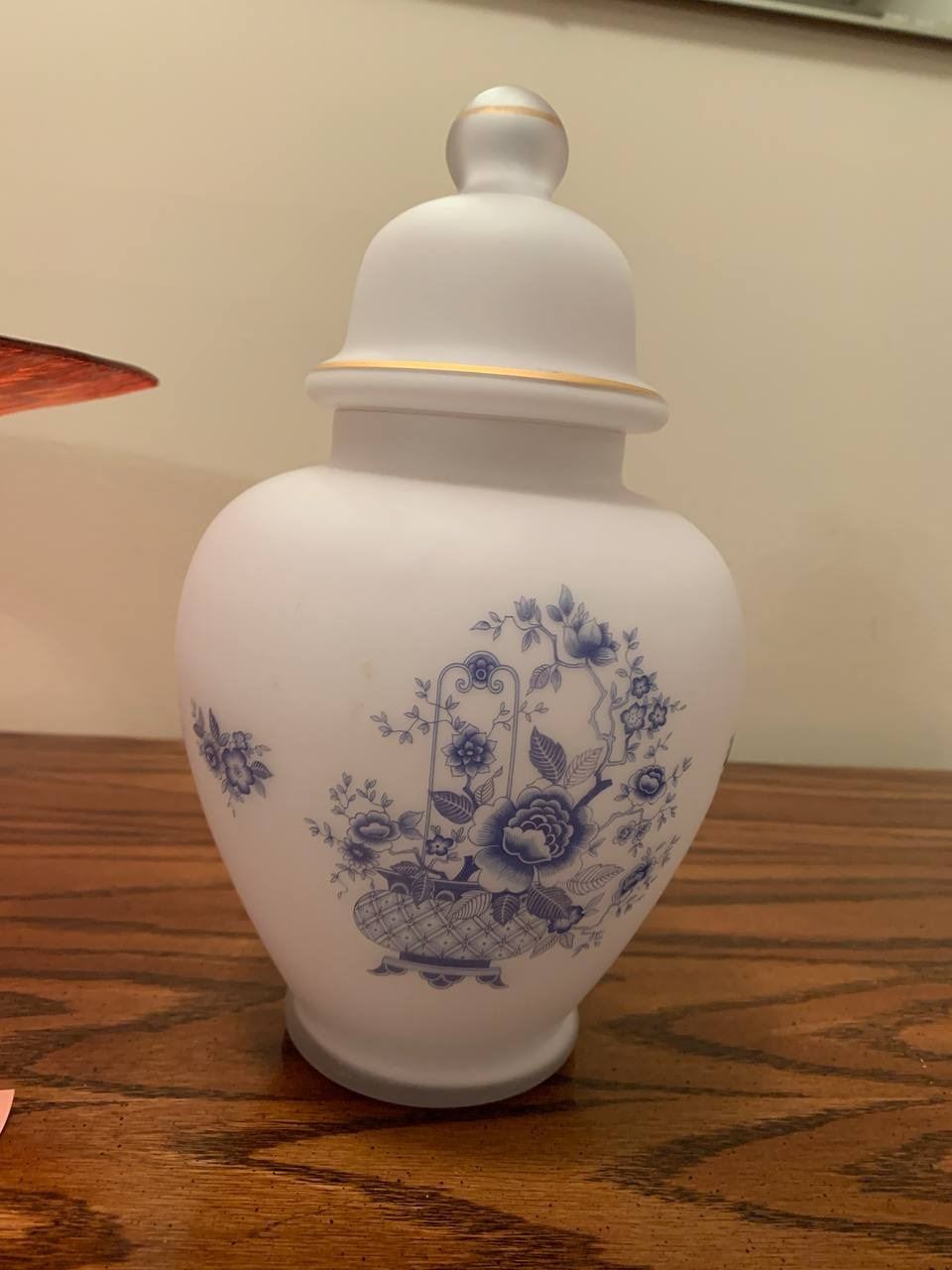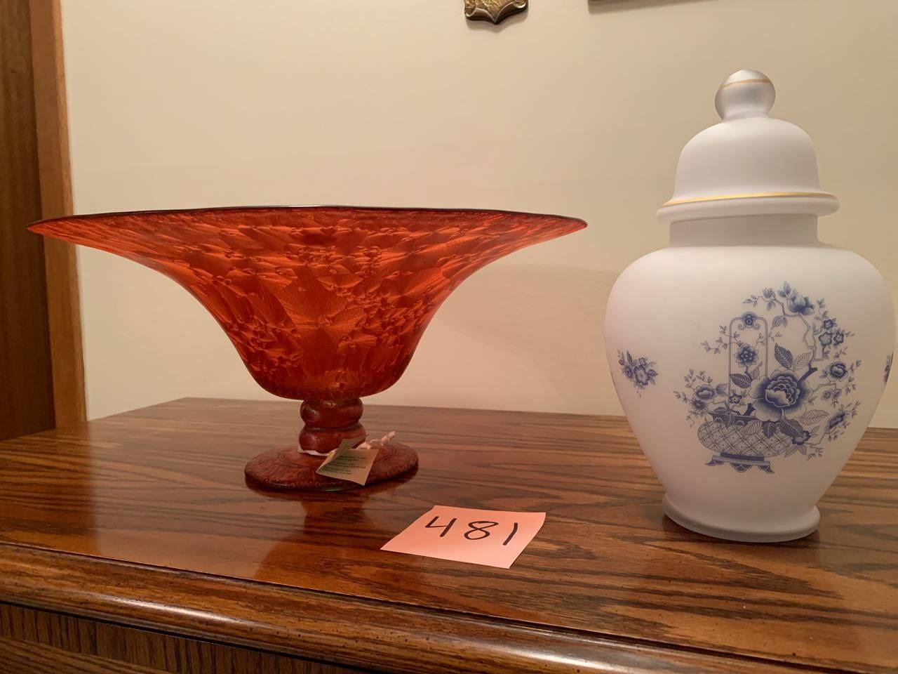 Beautiful Painted Glass Bowl and Frosted Glass Urn