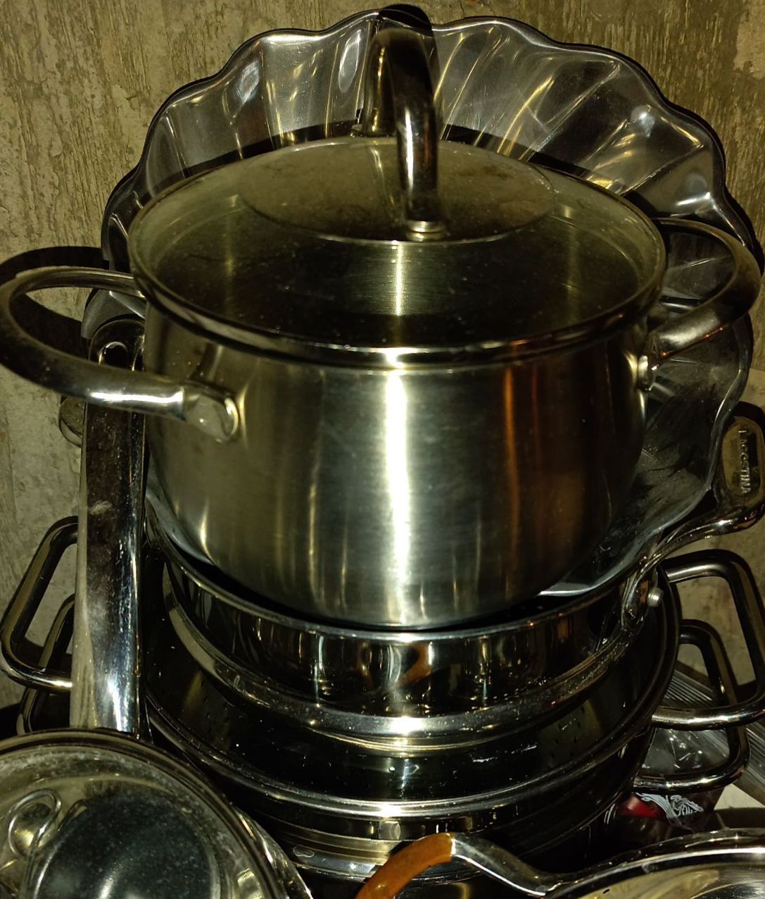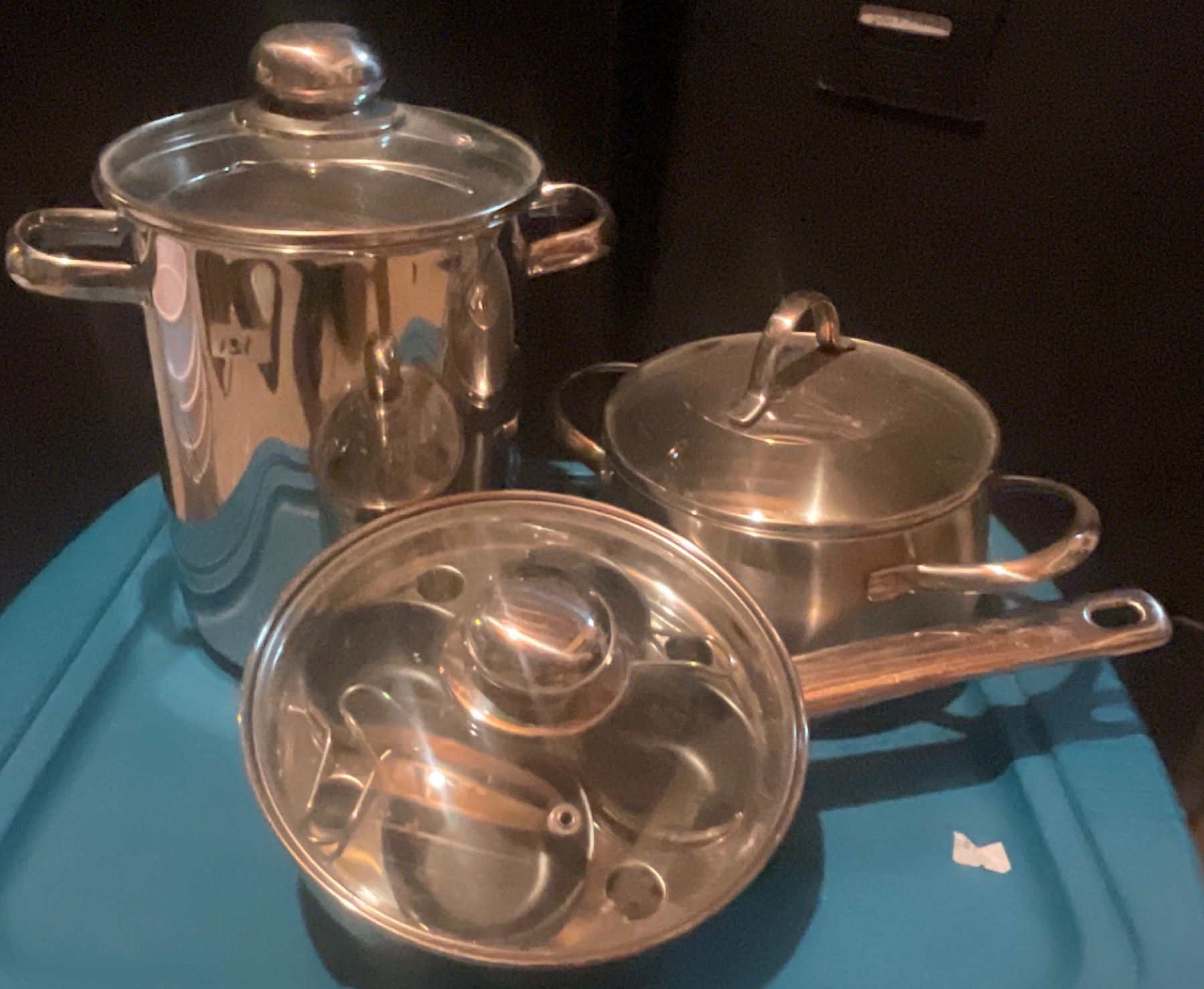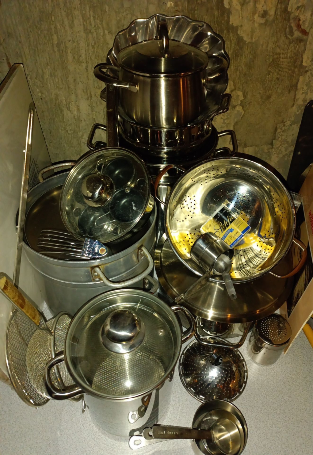 Beautiful Pots & Pans Very Large Some Small, Strainers Measuring Cups & More