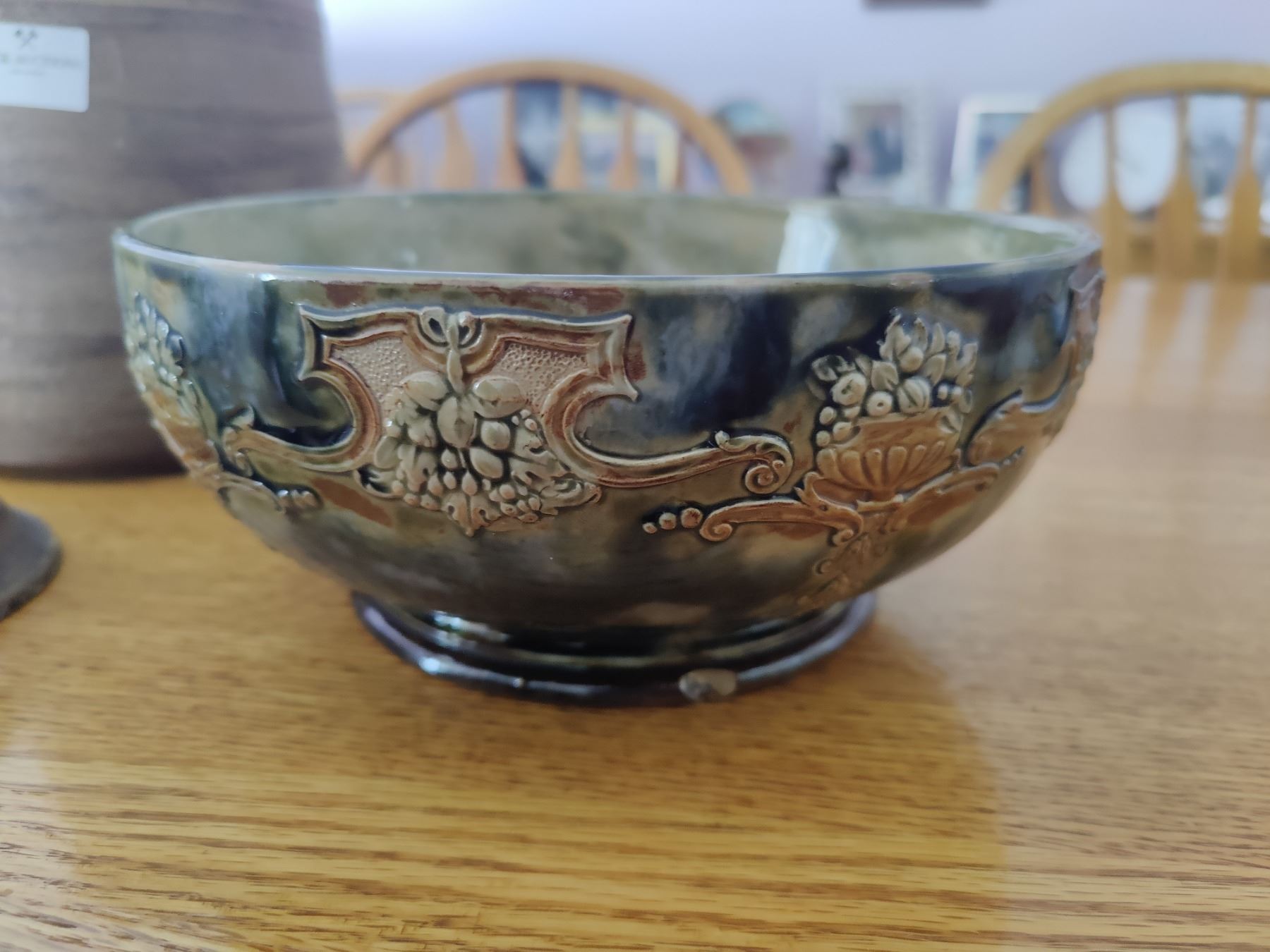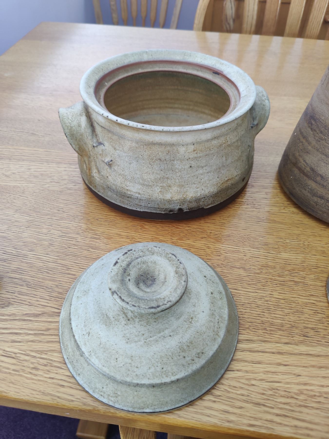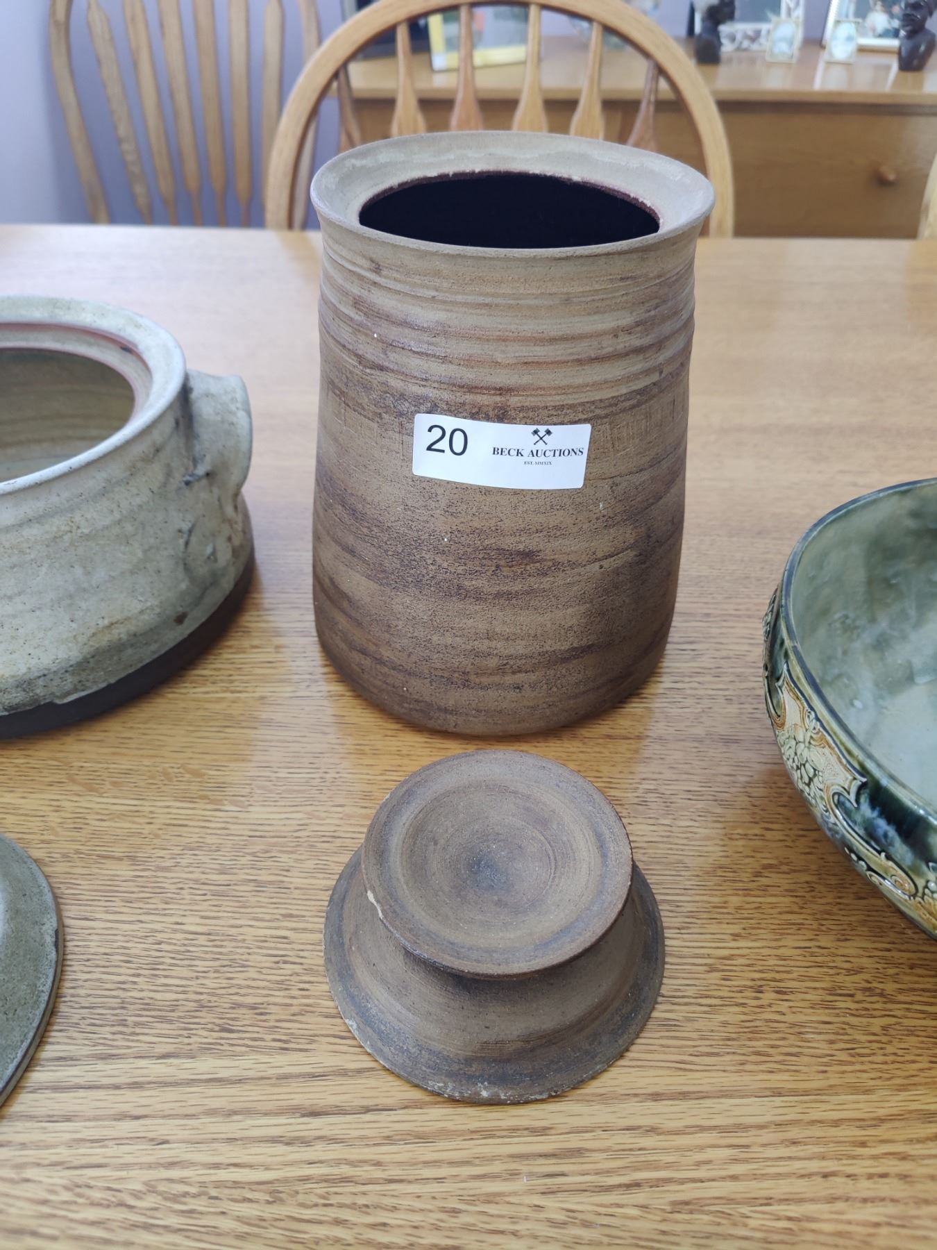 2 handmade jars with lids and 1 beautiful bowl with "Doulton" marking.