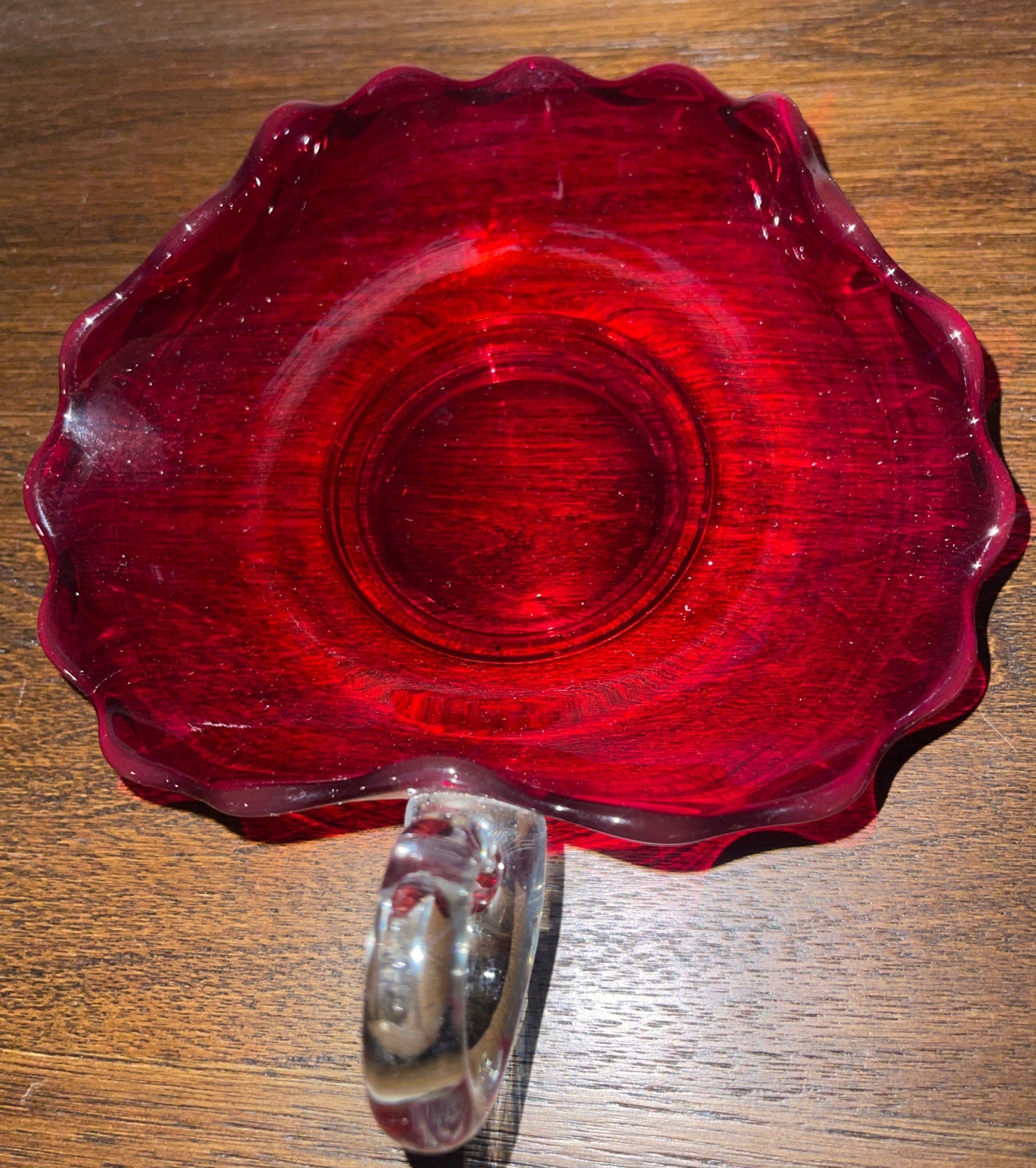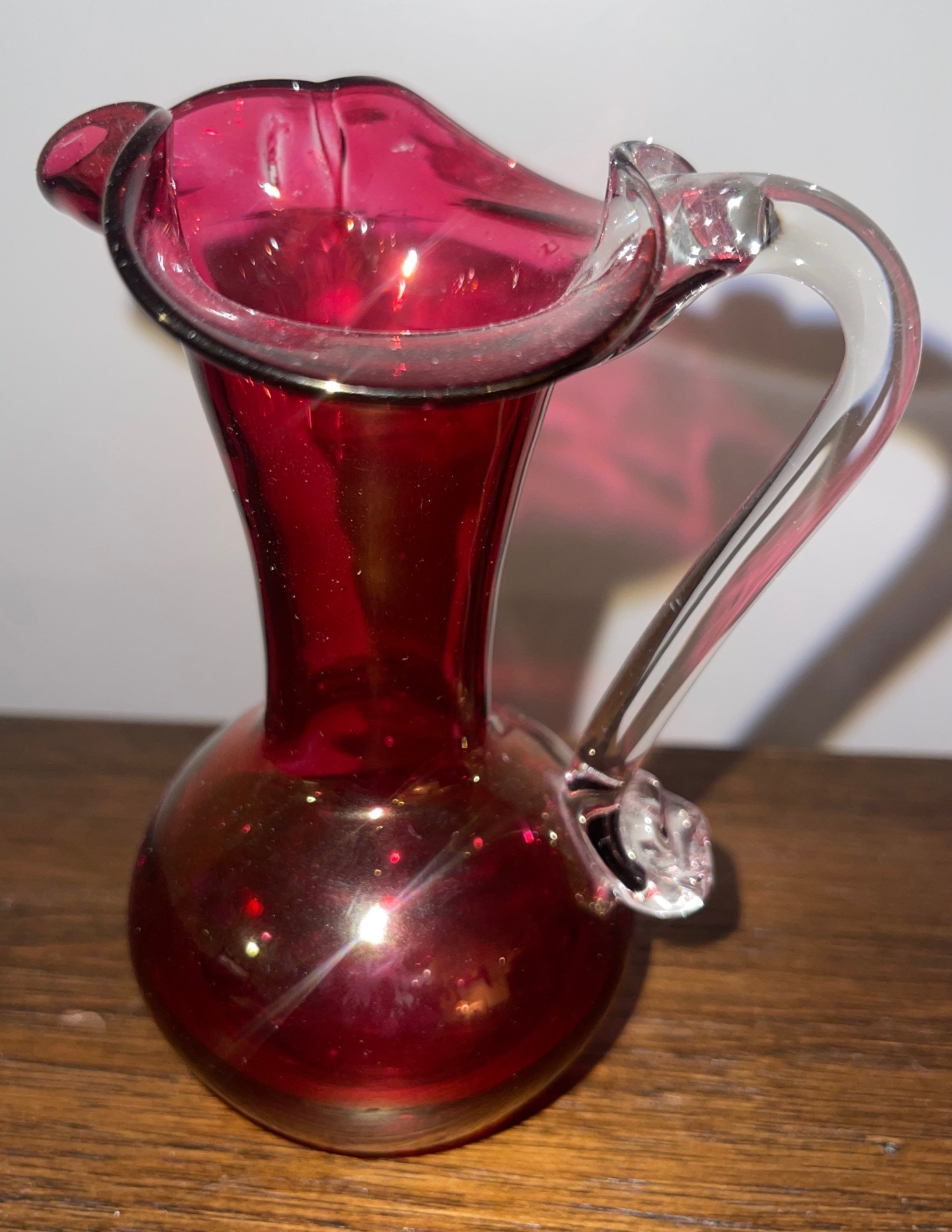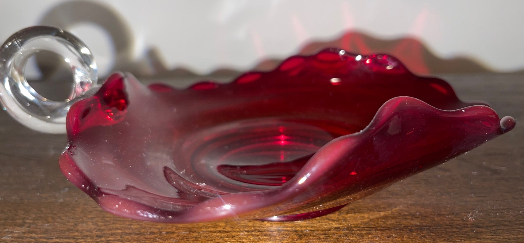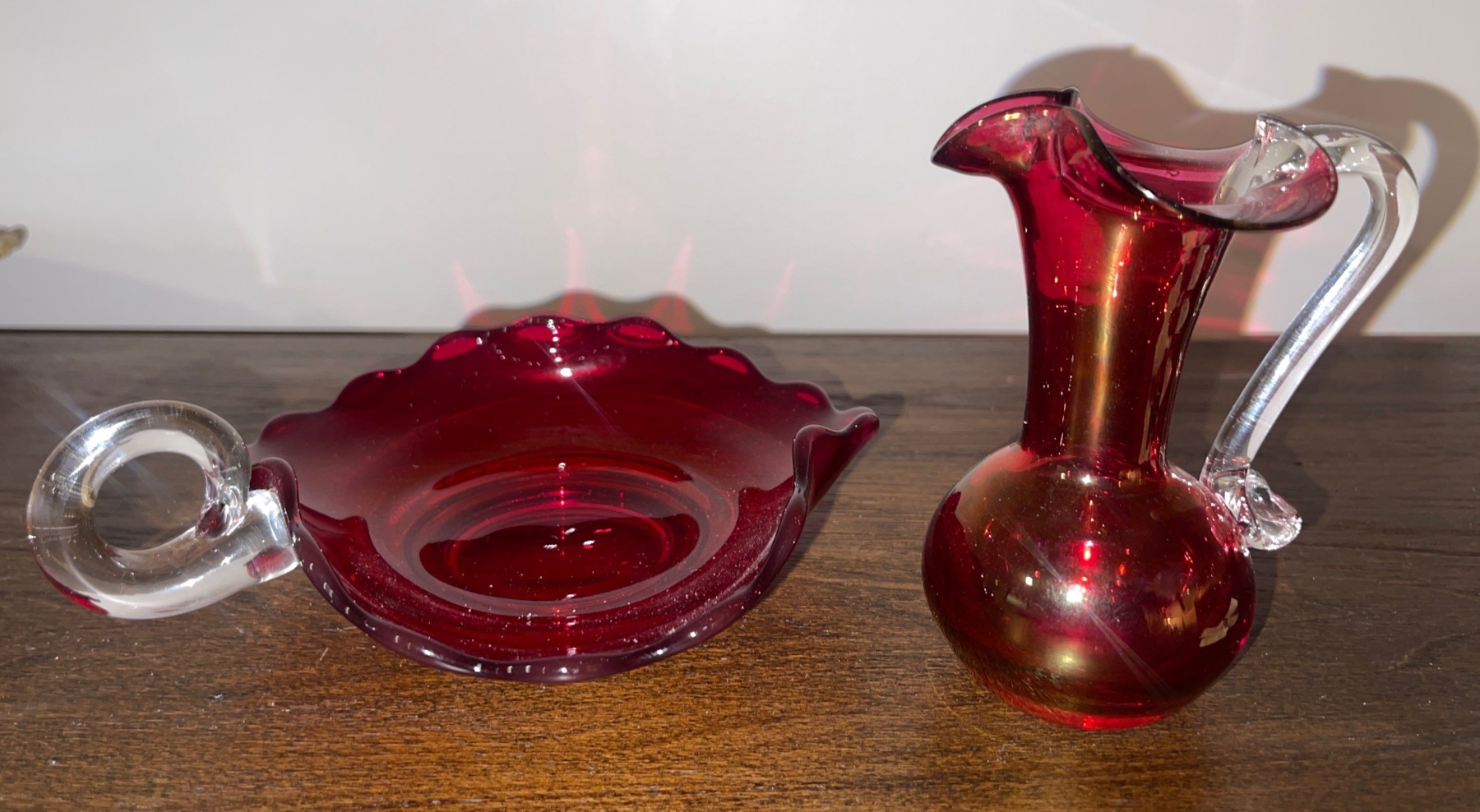 Beautiful Ruby Red Murano Art Glass Wedding Pitcher 5T w/ Clover Candy Dish