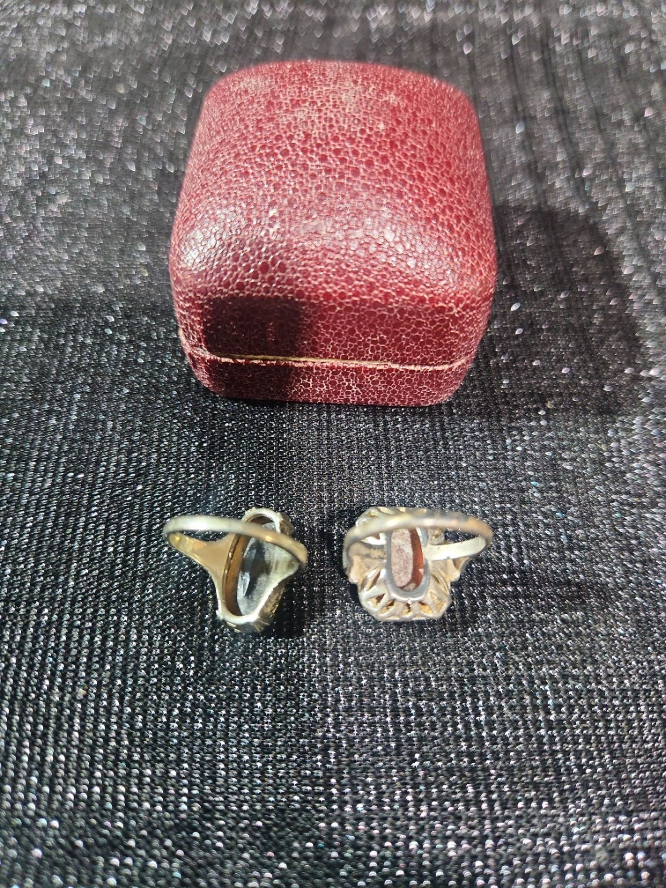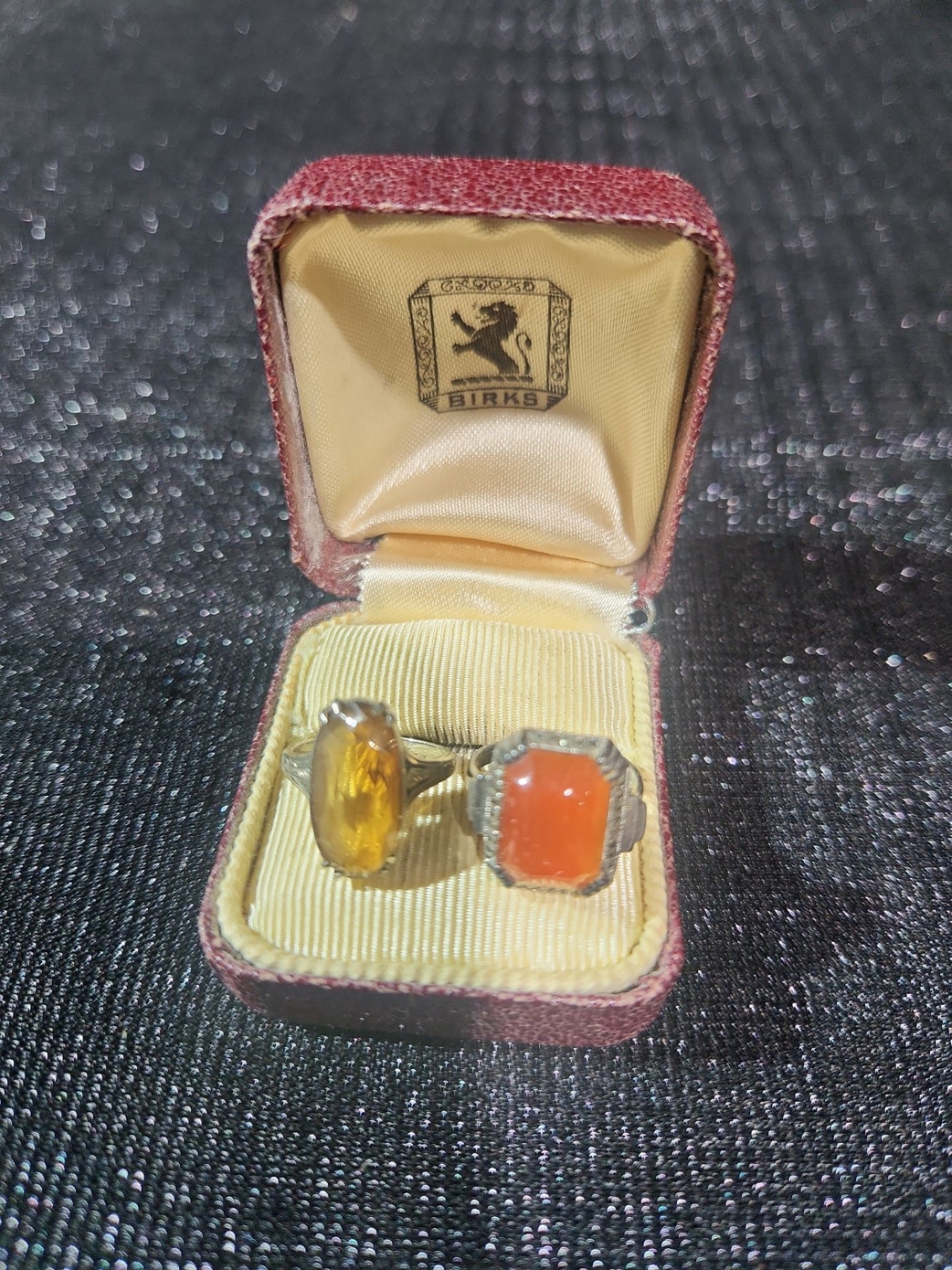 2 stunning rings up for grabs! The warm toned stones make these rings a treat for the eyes and for the hands. Great pieces for a collector who appreciates the amber toned jewellery and vintage look and feel