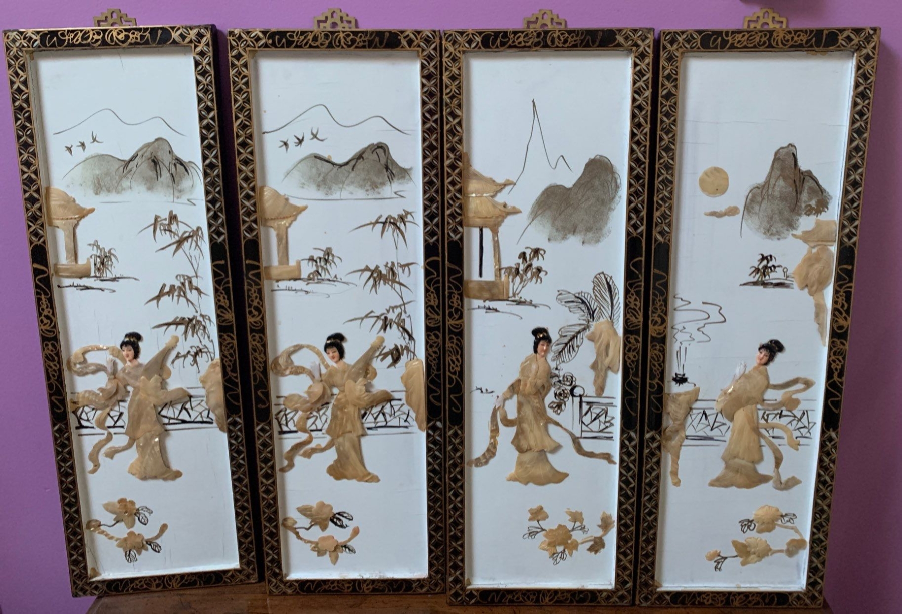 Beautiful set of 4 Mother of Pearl Art Pieces - 10x30 Each