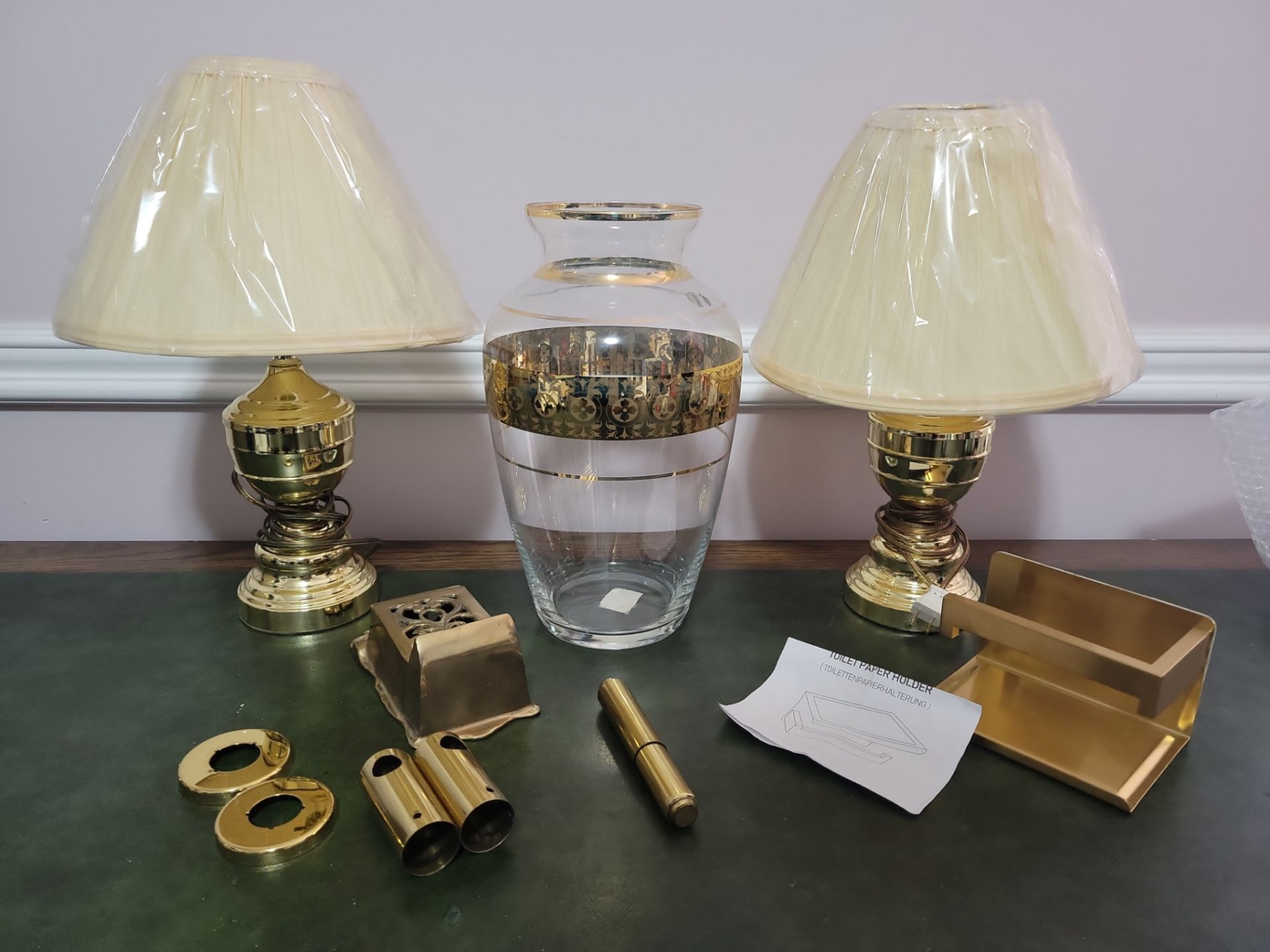 Beautifully Brass Home Accents & Decor - Pair Of Lamps 12T Antique Matchbox Mount TP Holder & more