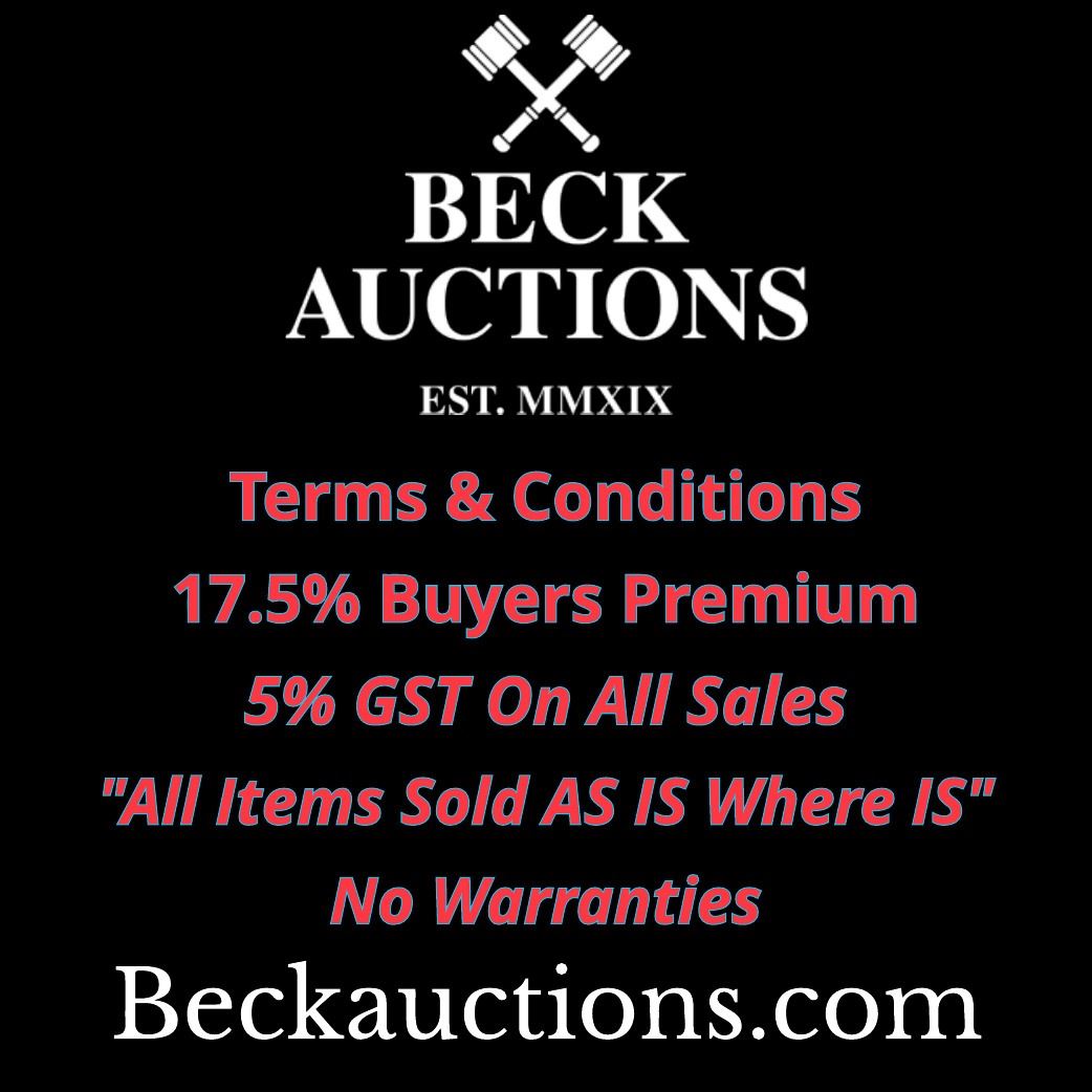Please contact the house with any questions at (825) 777-6666 Beck Auctions Inc.