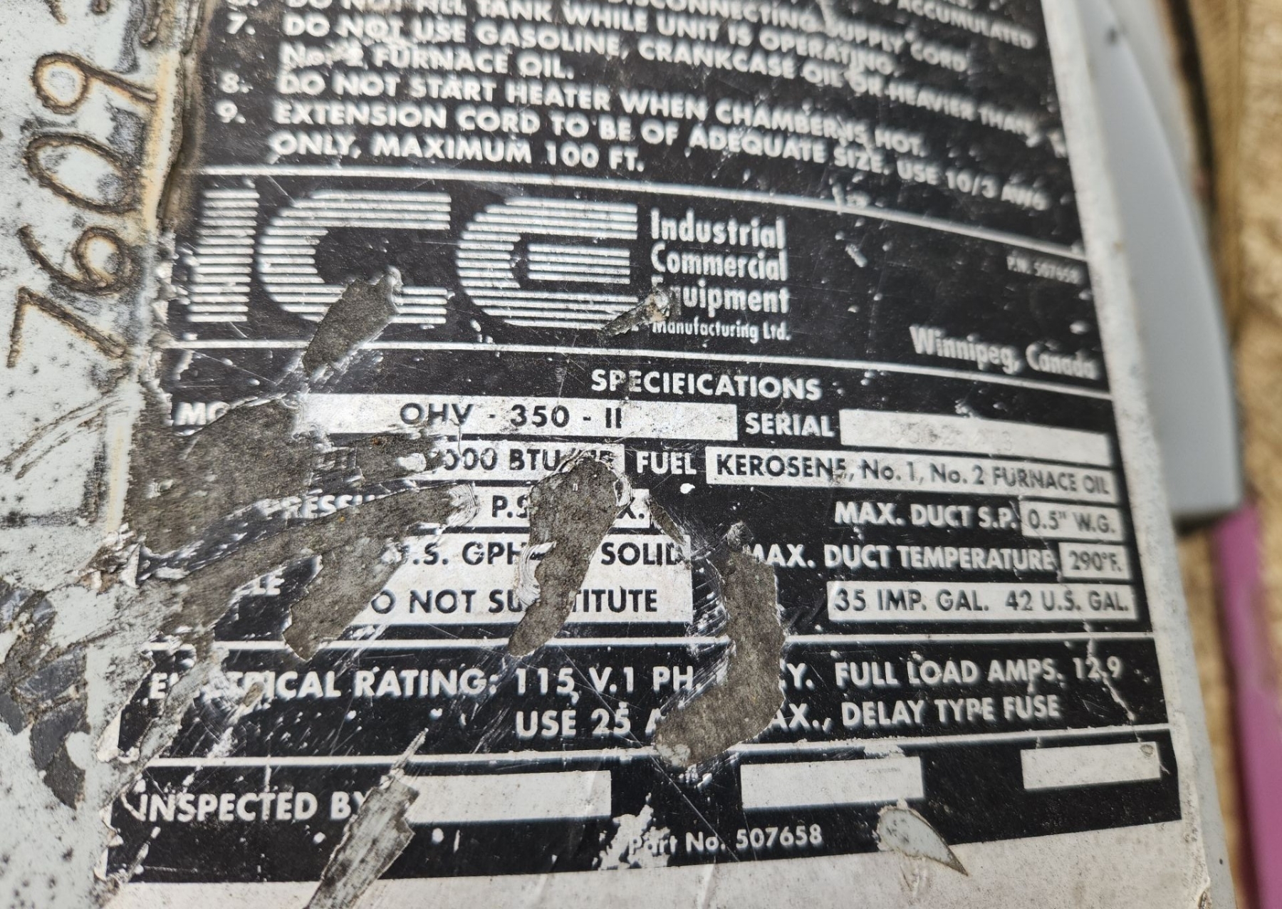 Beckett Model OHV-350-II Frost Fighter (Not Running/ Repairs Required) 29 W, 75 D, 55 T